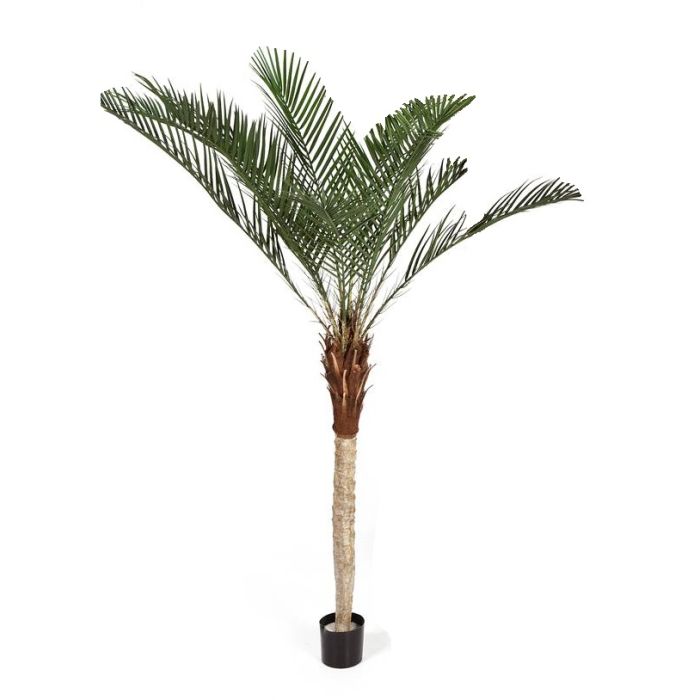 Graziosa palma da dattero decorativa dal fusto artificiale chiaro e di ca. 240 cm di altezza.