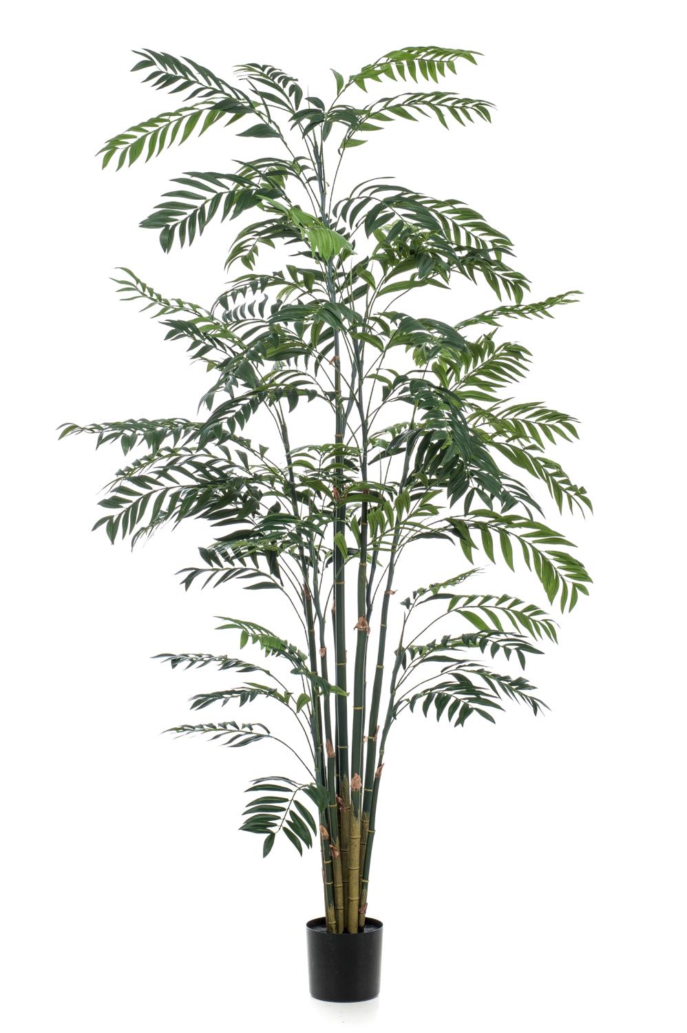 La palma di bambù artificiale MERIEL sembra particolarmente realistica grazie all'uso di tronchi dall'aspetto naturale. Grazie alla sua altezza, sta particolarmente bene nella hall di un hotel, nelle fiere o nei centri commerciali.