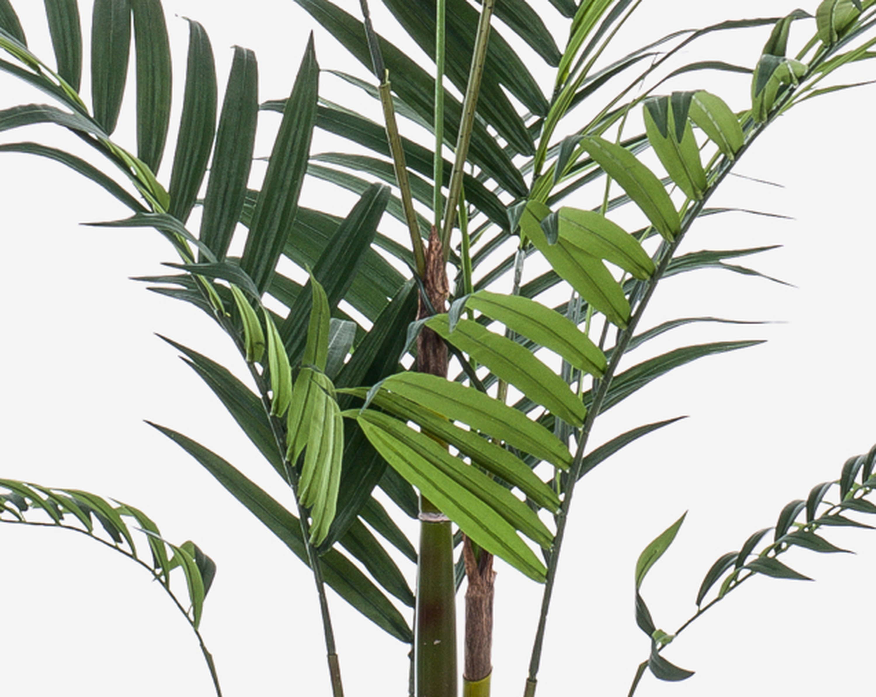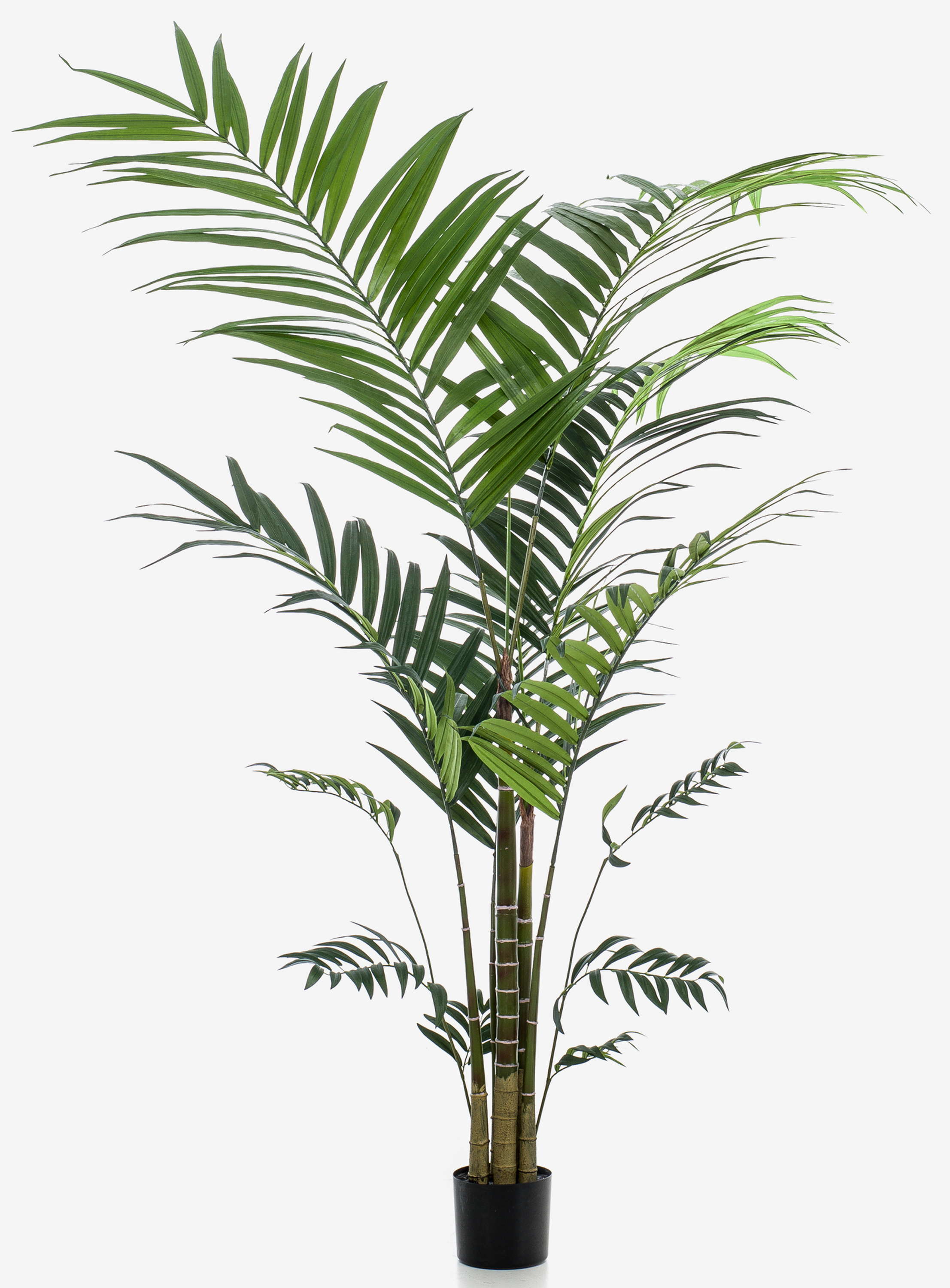 La palma finta di kentia NESTA sembra particolarmente realistica grazie all'uso di tronchi dall'aspetto naturale. Grazie alla sua altezza, sta particolarmente bene nella hall di un hotel, nelle fiere o nei centri commerciali.