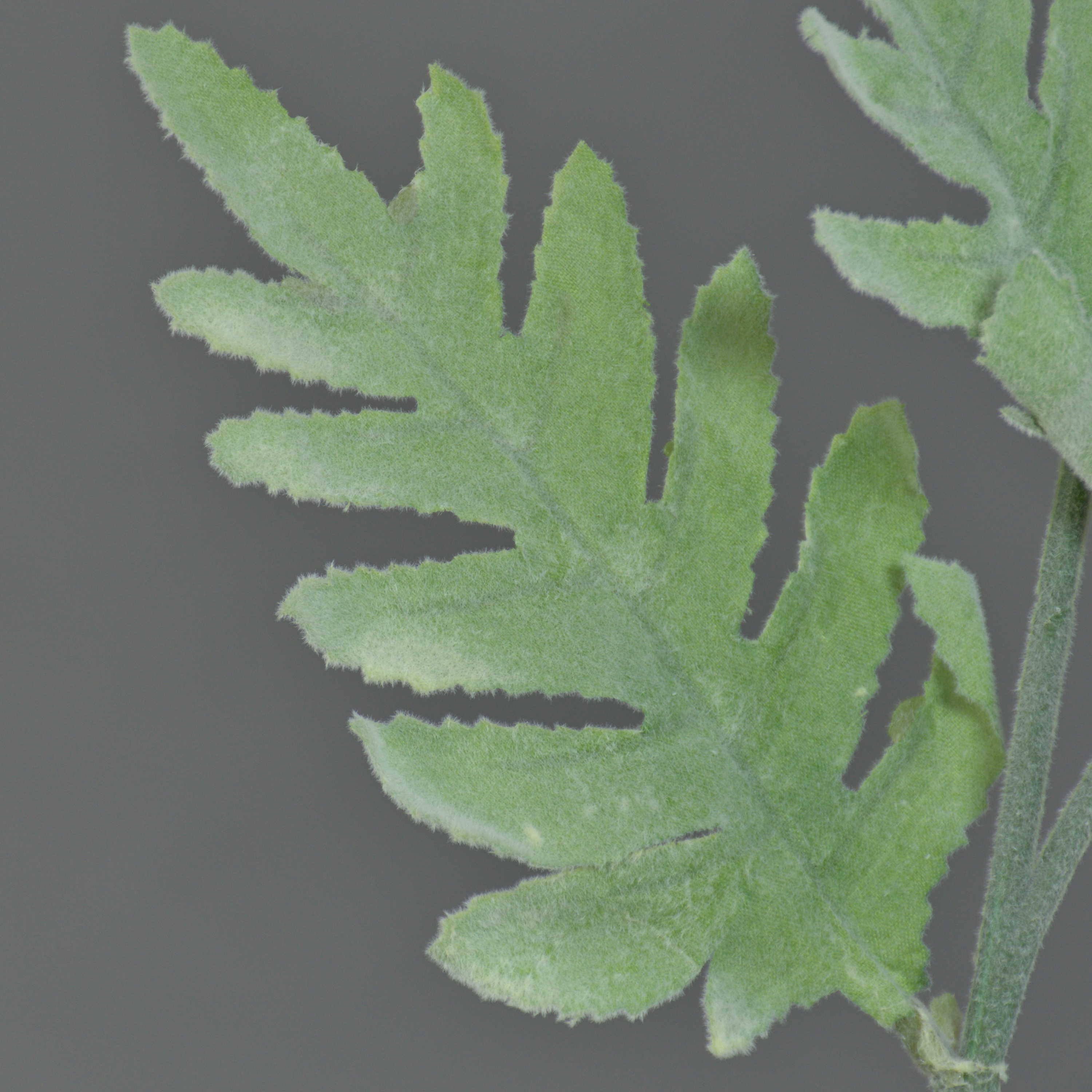 - 4 foglie verdi con superficie vellutata in fibra tessile di ottima qualitá e forma appuntita con sfrangiature.