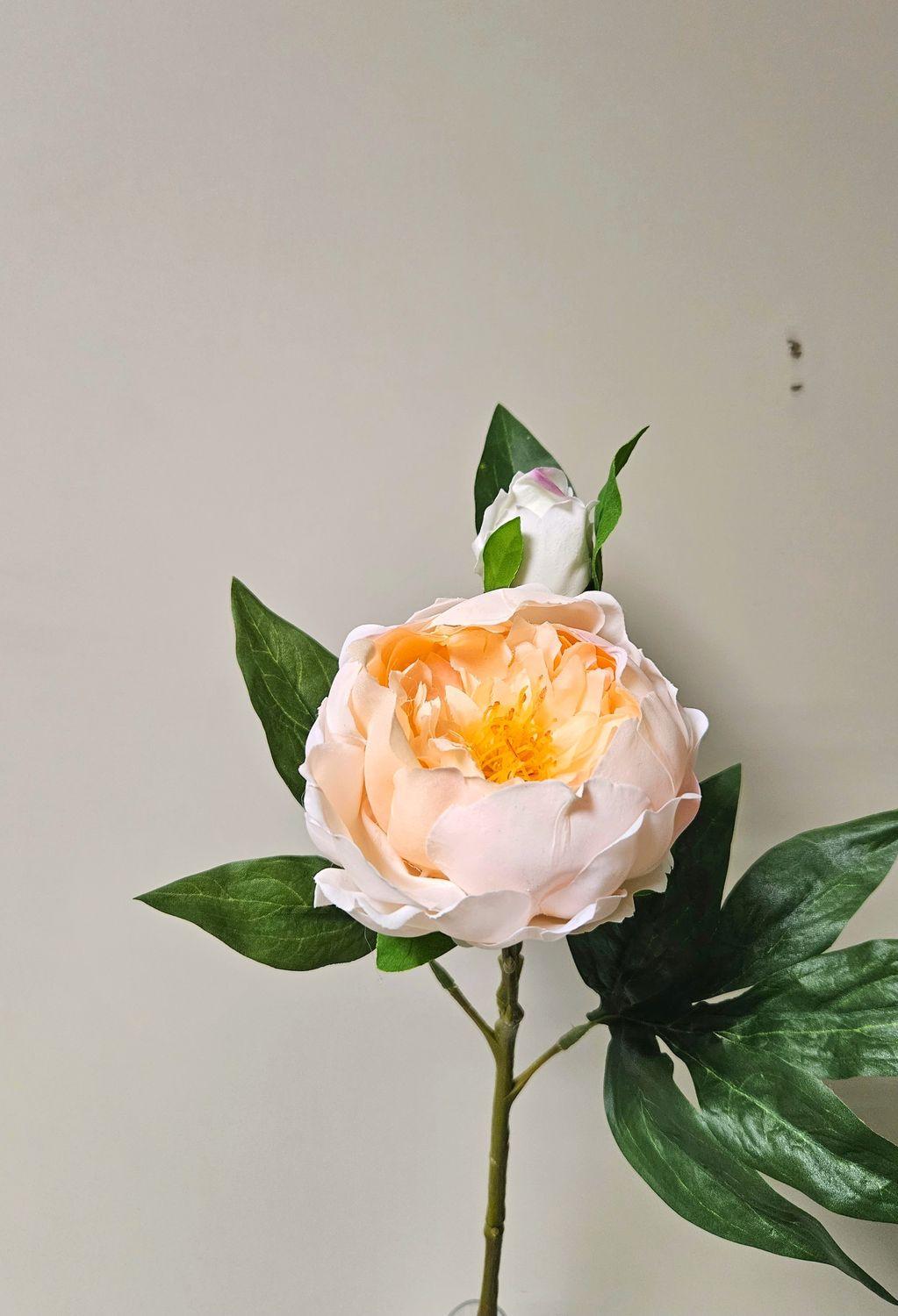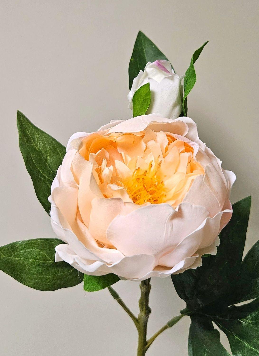 Peonia artificiale FYRFAR, semiaperta, crema-albicocca, 60 cm