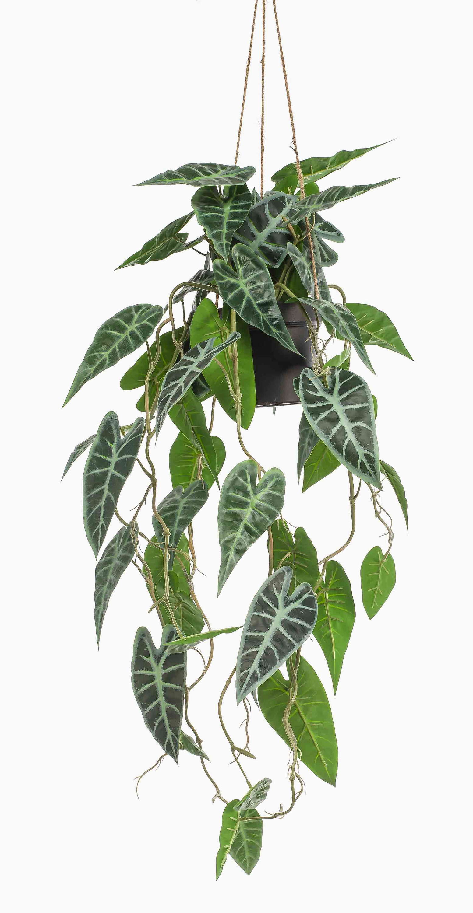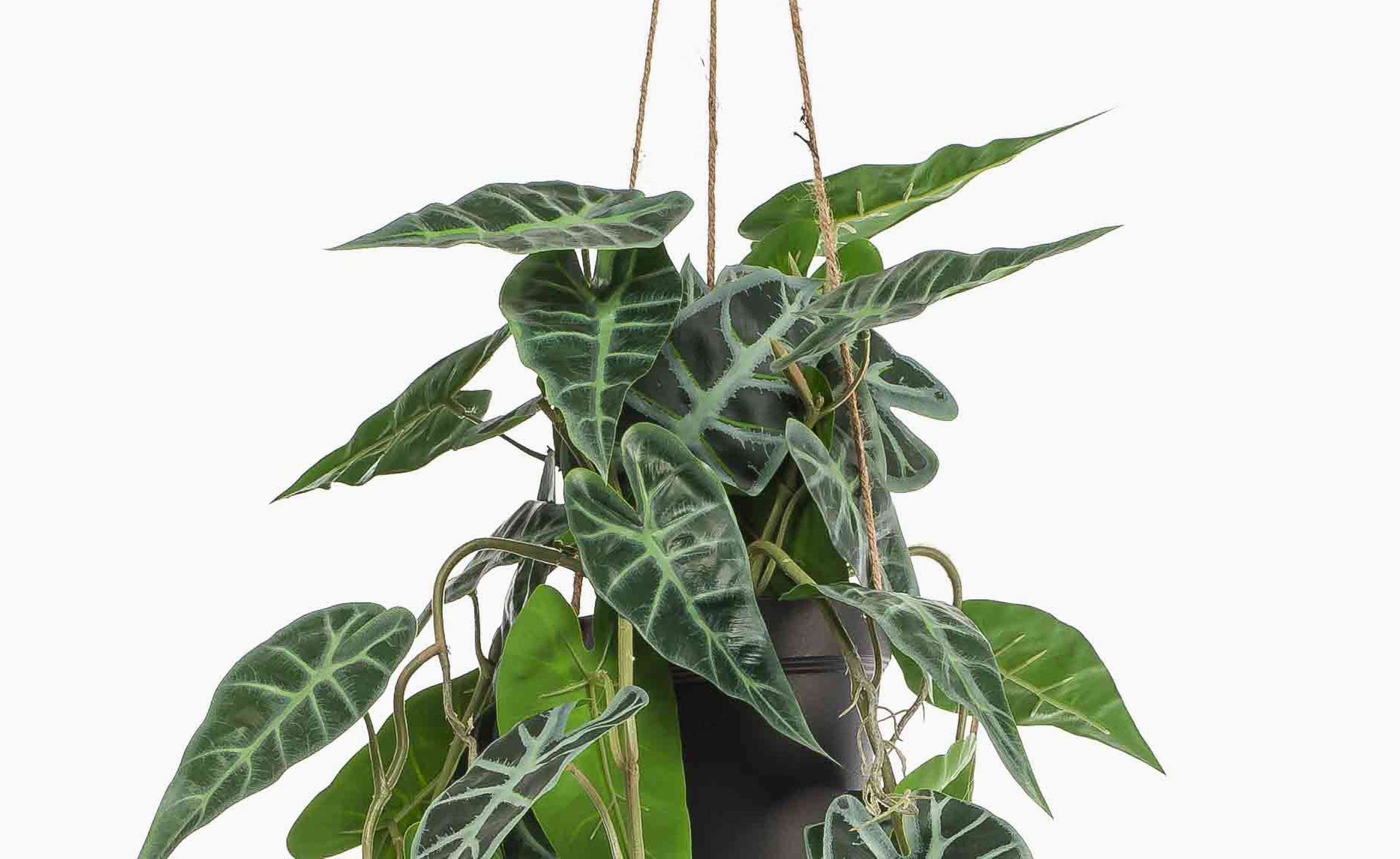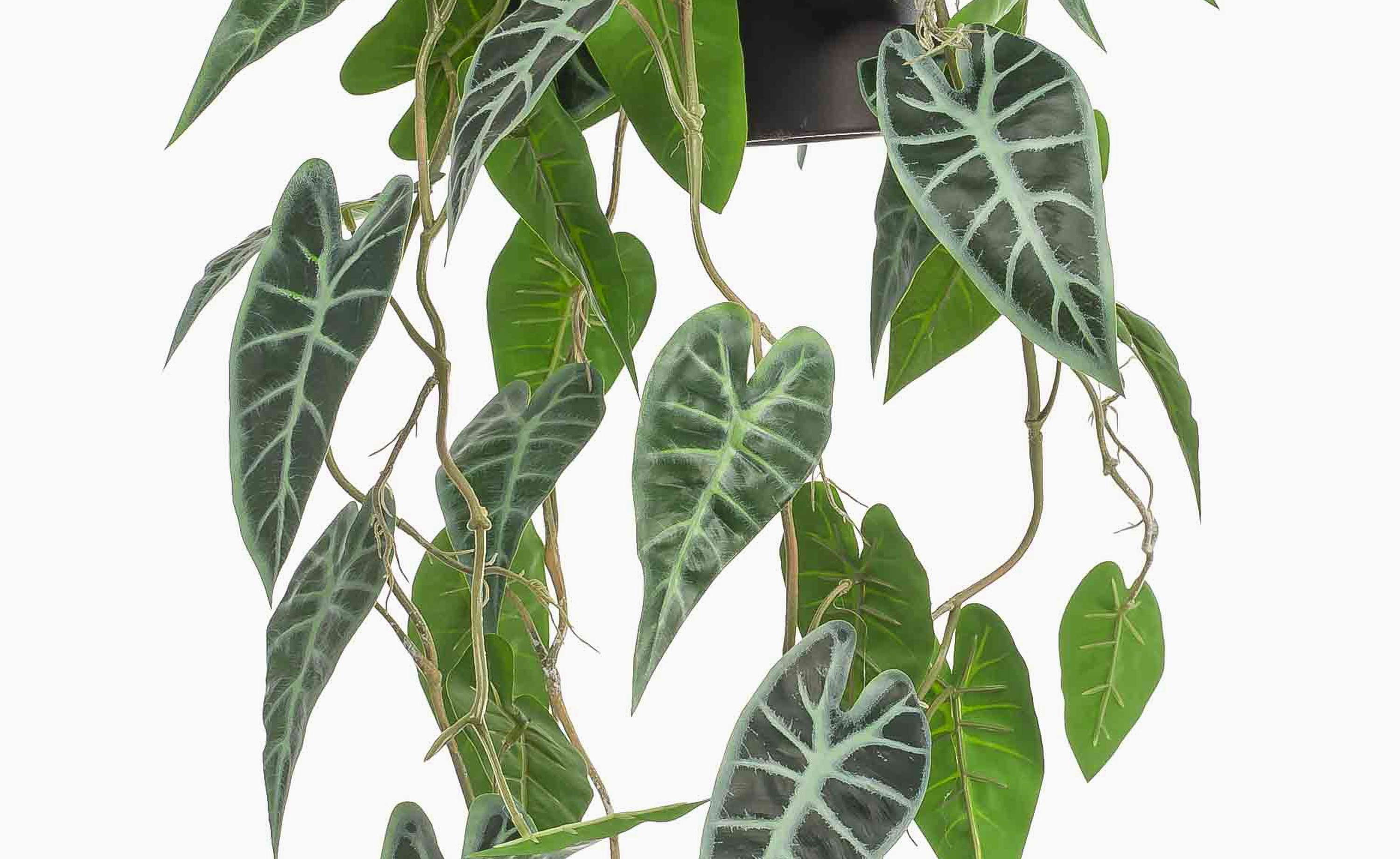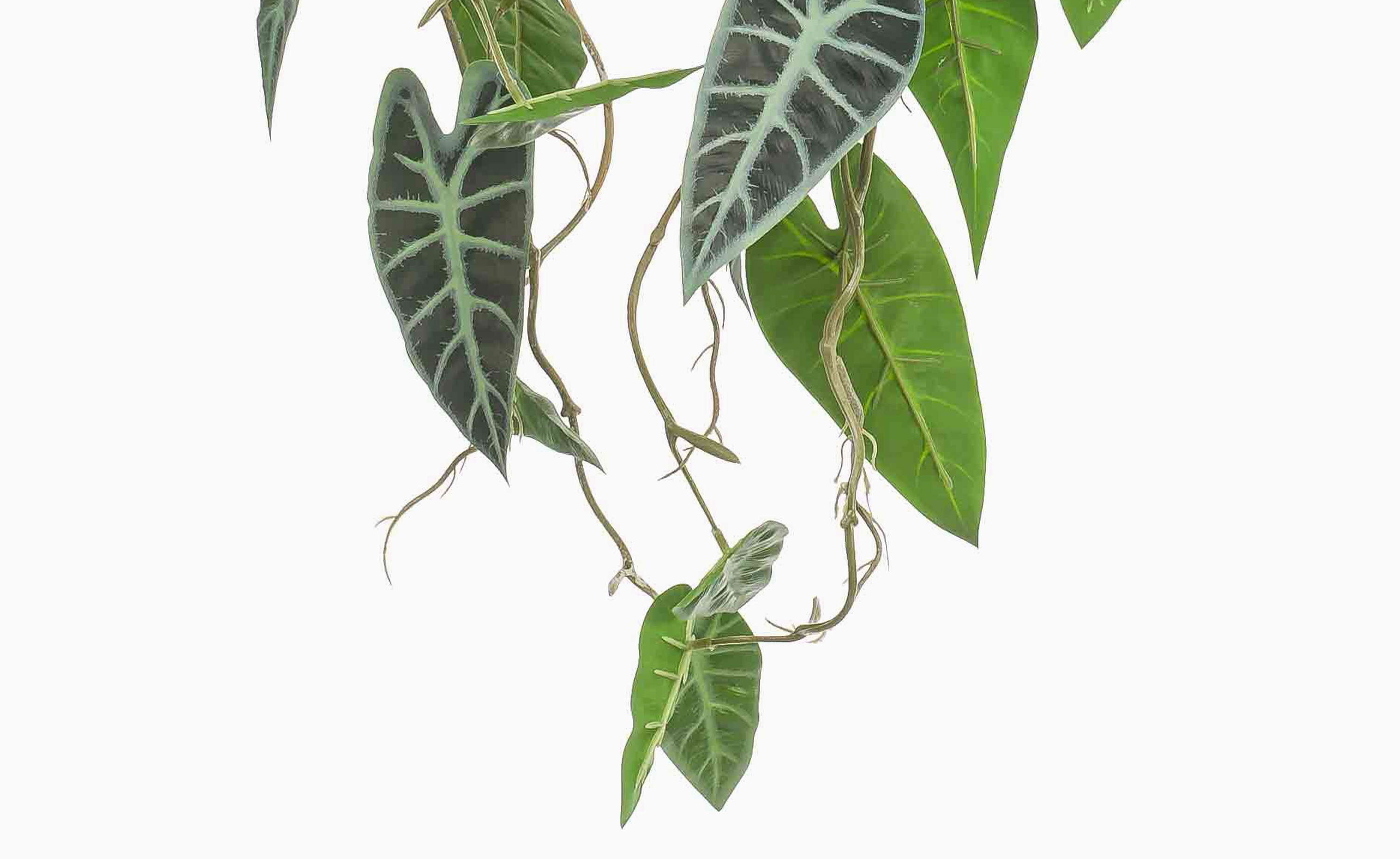 Pianta decorativa Alocasia Sanderiana, vaso decorativo, verde-bianco, 80 cm