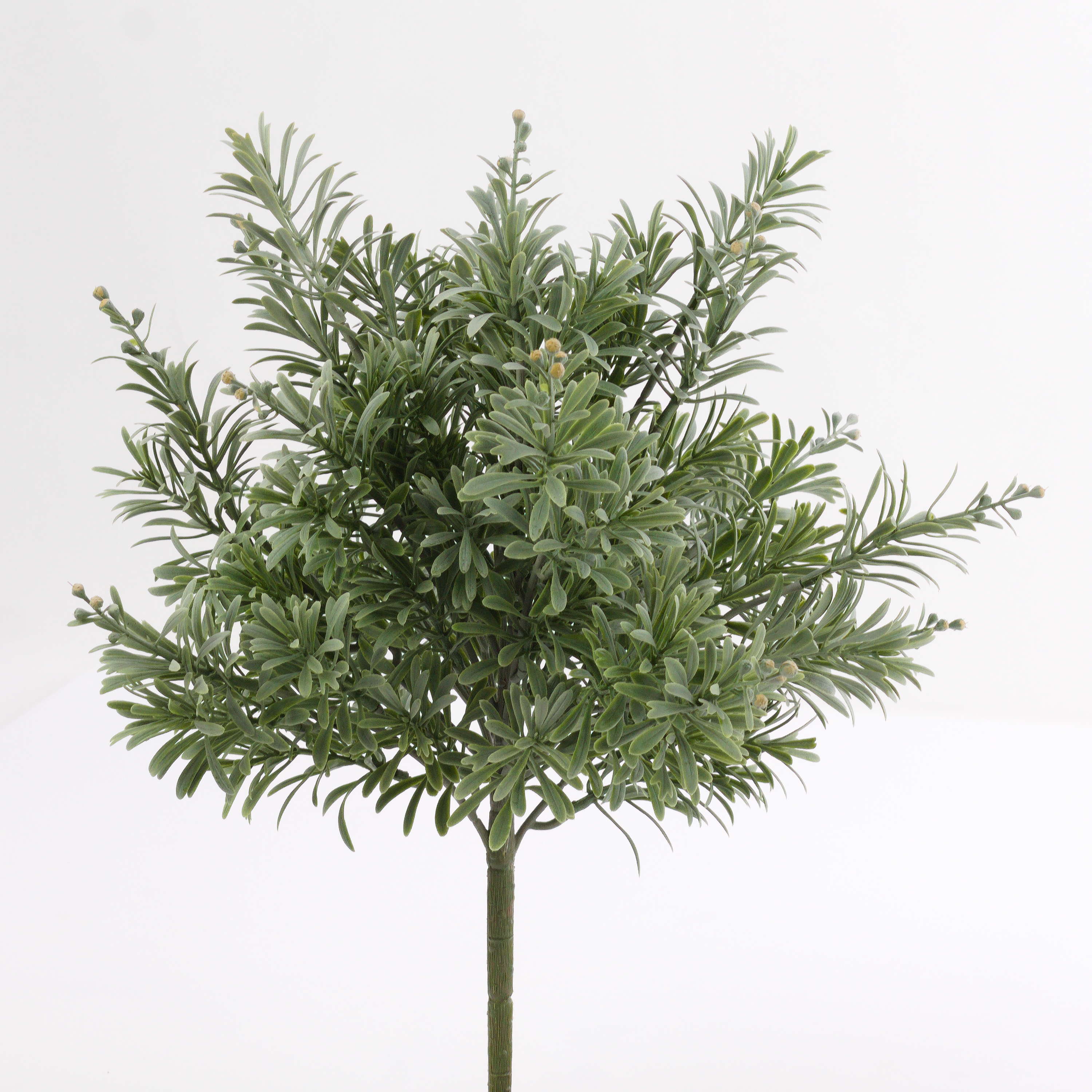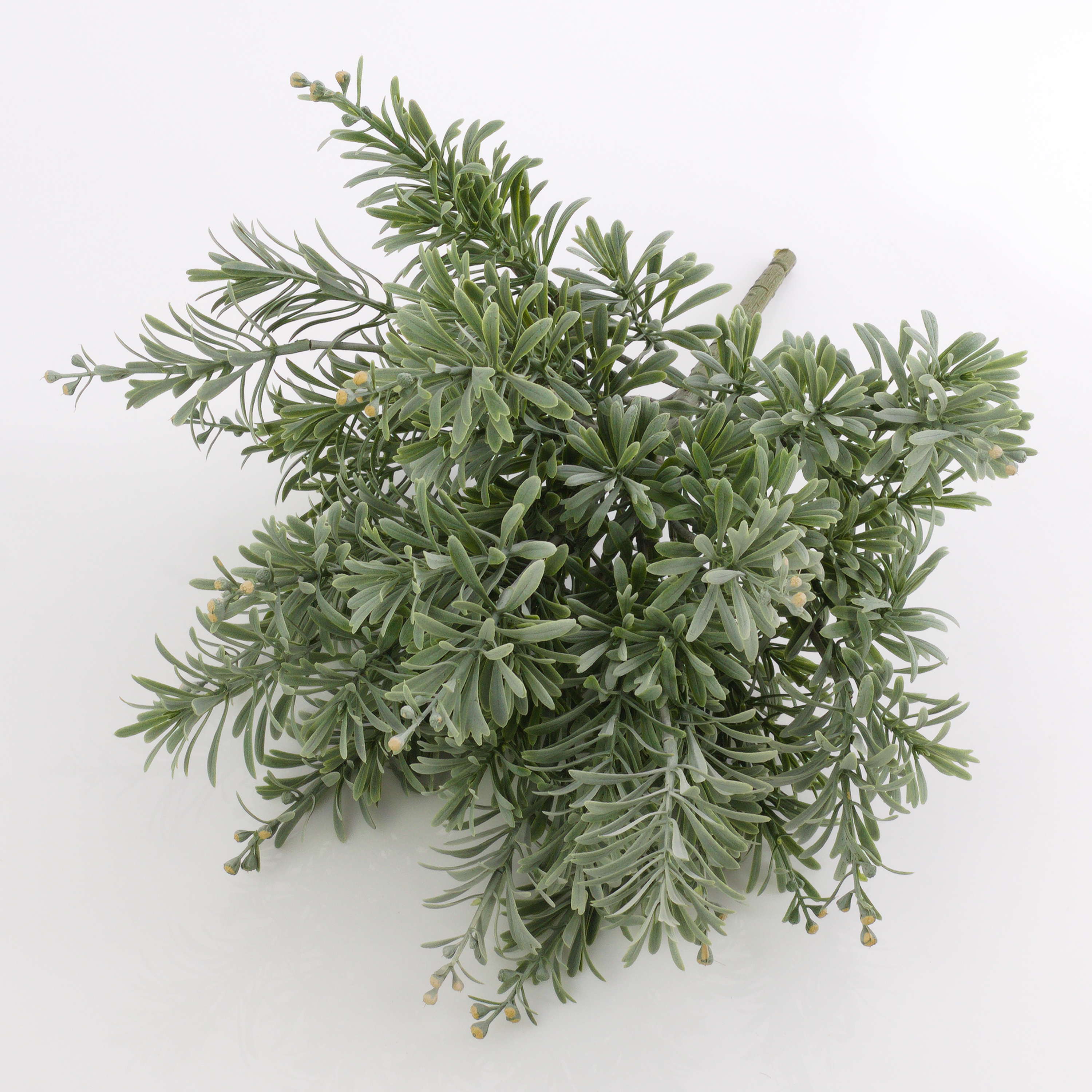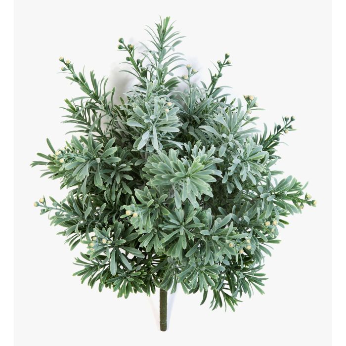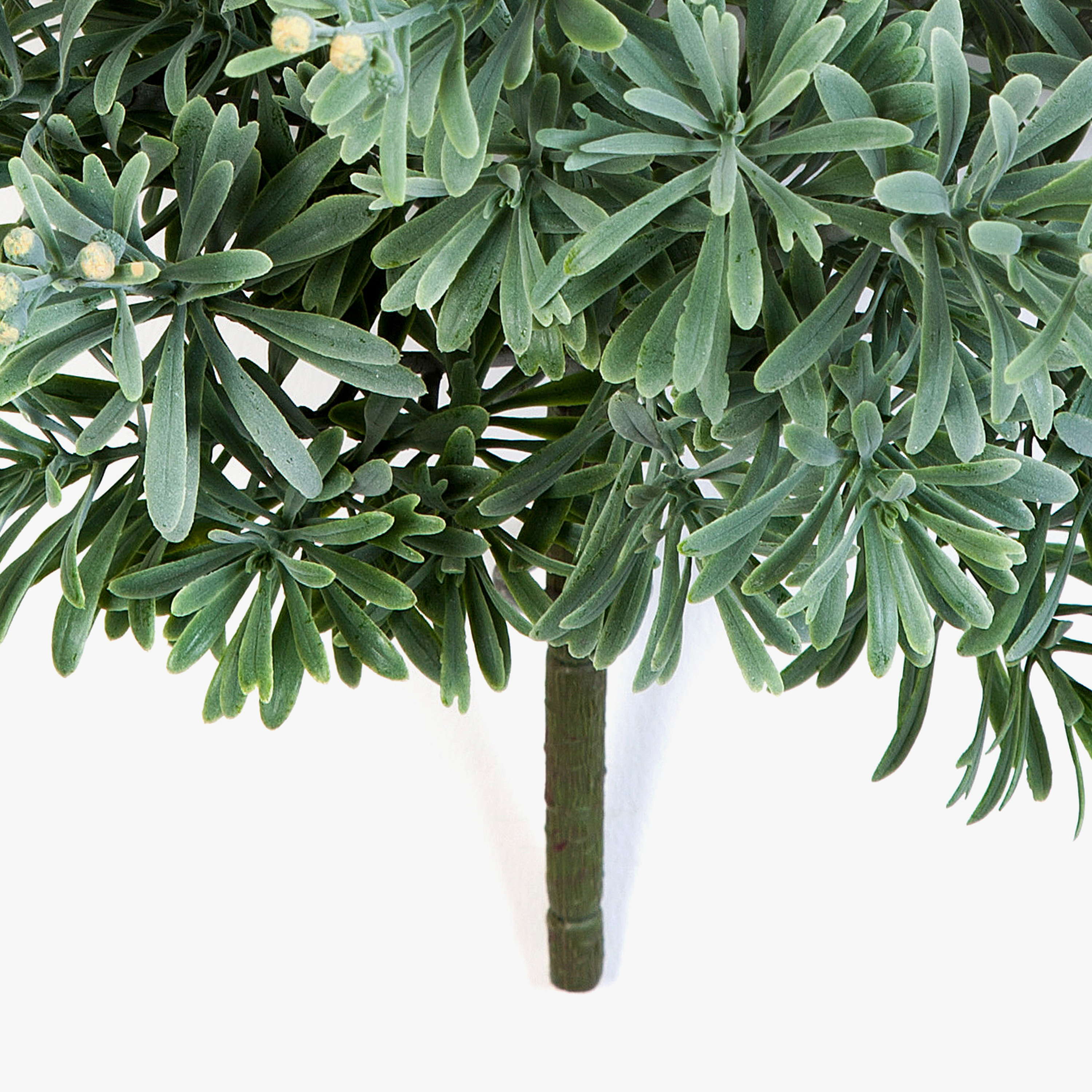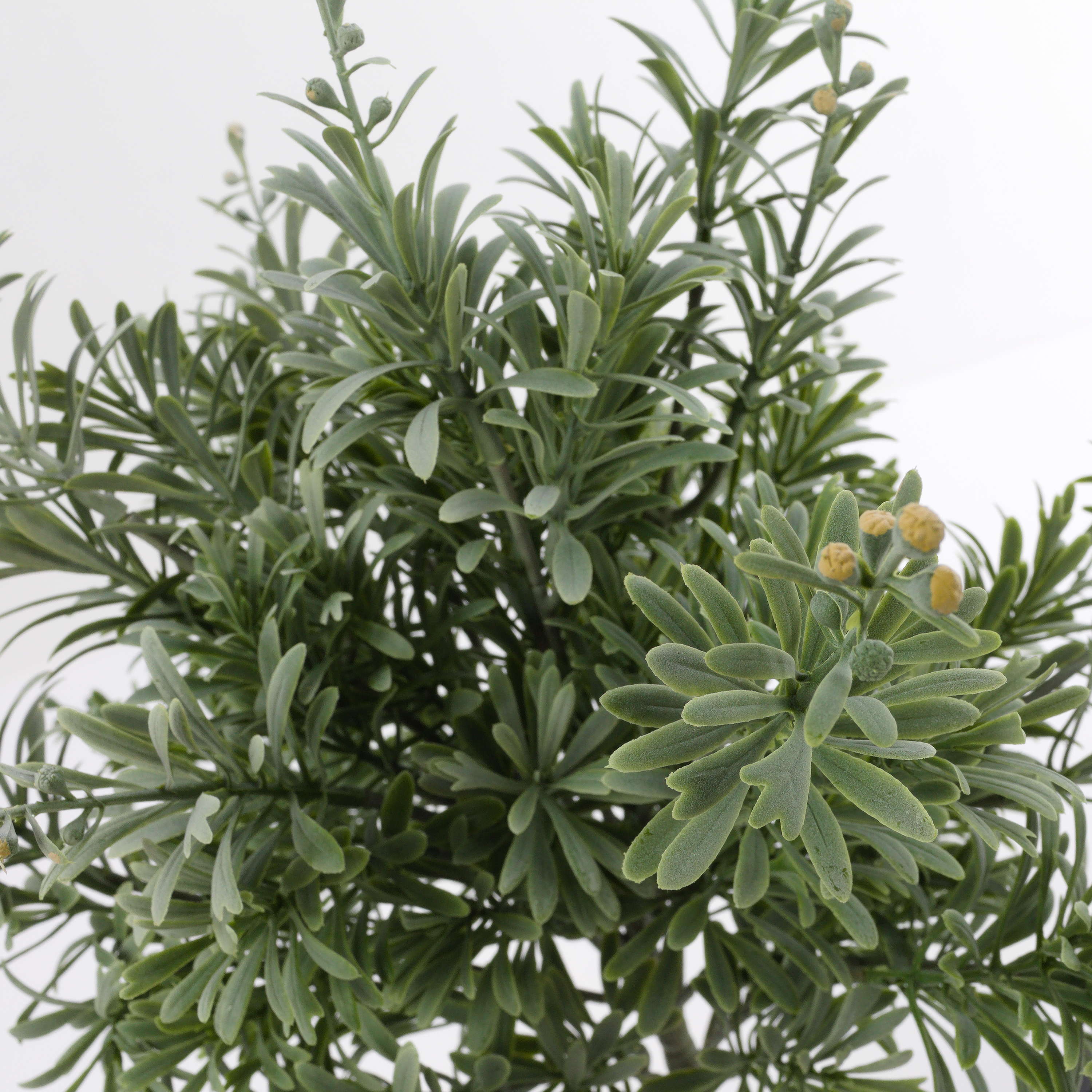 Il cespuglio decorativo SAKIKO comprende uno stelo che ne facilita la messa in posa in un vaso da fiori. Messo in un vaso di vostro gradimento il cespuglio artificiale di ca. 38 cm dalle fitte foglie color verde-argento, risulta perfetto per decorare le vostre scrivanie.