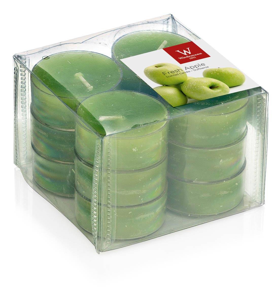 Piccole candele ASTRID con profumo, Fresh Apple, 12 pezzi, verde mela, 1,6cm, Ø3,7cm, 4h