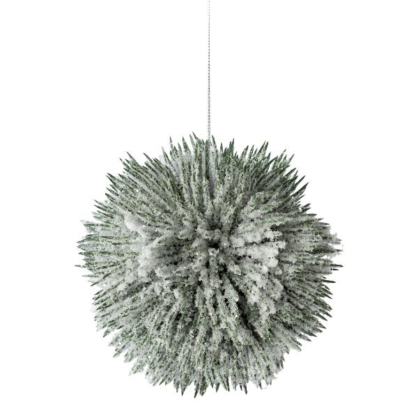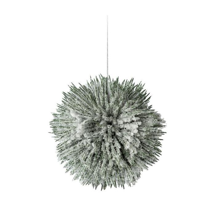 Pino artificiale sferico PERLKY, innevato, pendente, verde-bianco, Ø 14 cm