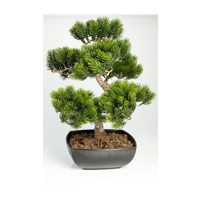Pino bonsai in plastica con ca. 210 rametti in ciotola nera.Il bonsai ha un´altezza totale di ca. 50cm ed é adatto all´uso esterno.