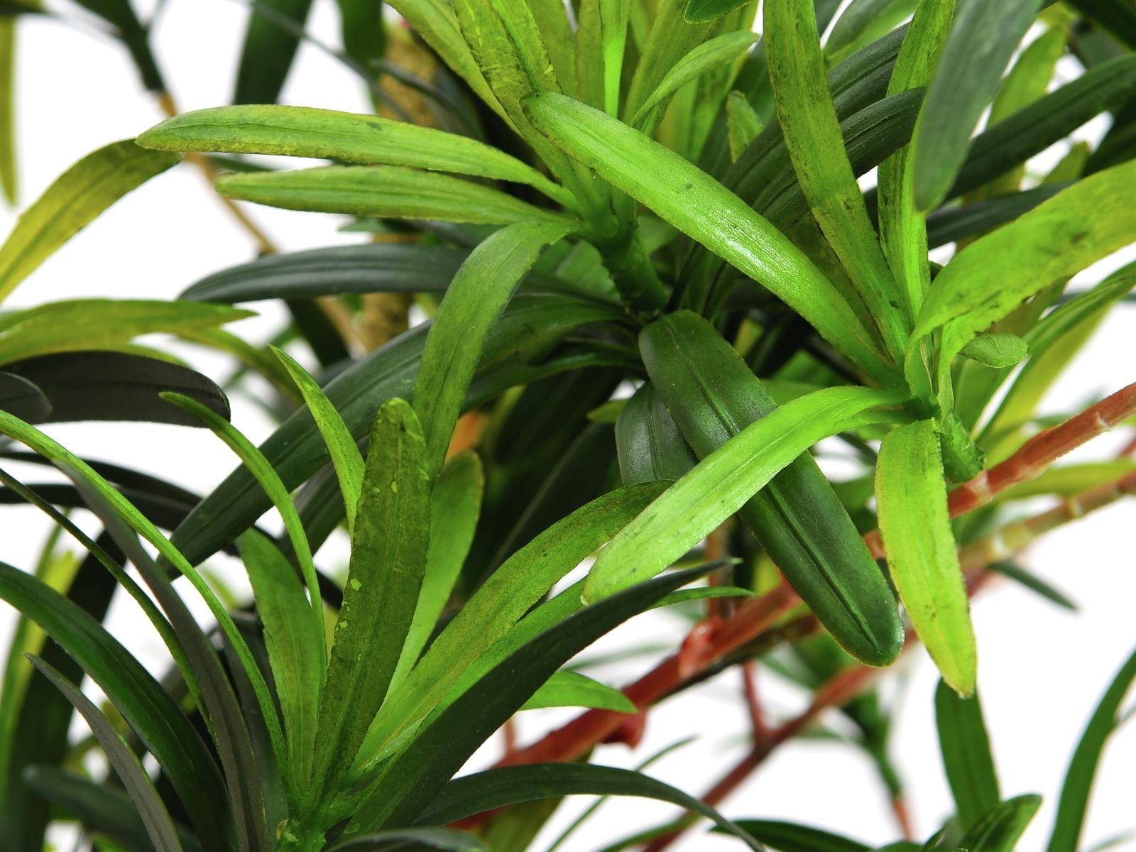 Pianta di Podocarpus (o Podocarpo) decorativa AMANDO dal fusto artificiale fedelmente riprodotto e dall'aspetto naturale. Questa pianta artificiale misura ca. 90 cm di altezza totale.