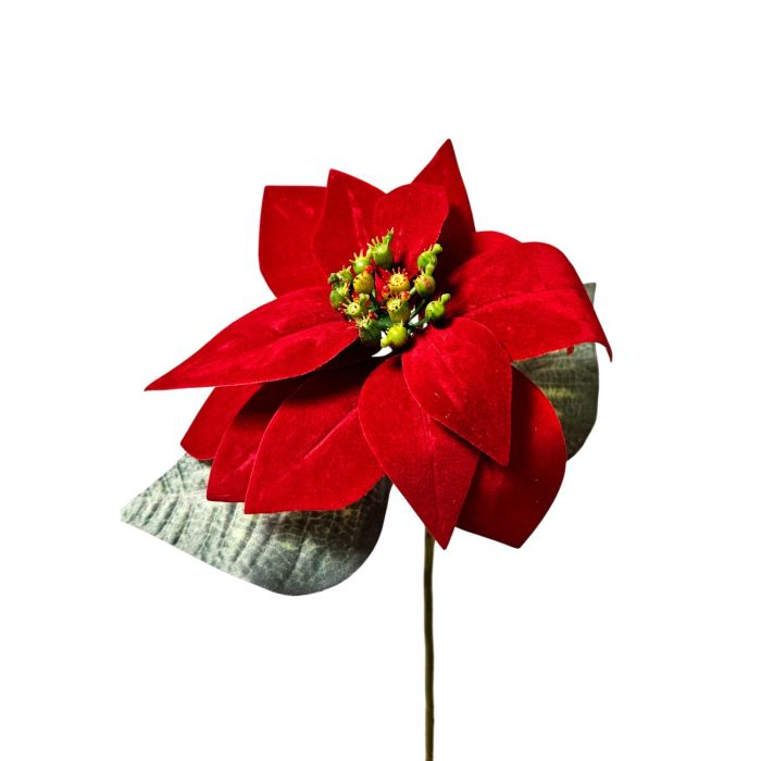Poinsettia artificiale in velluto LIBASSE, rosso, 45 cm