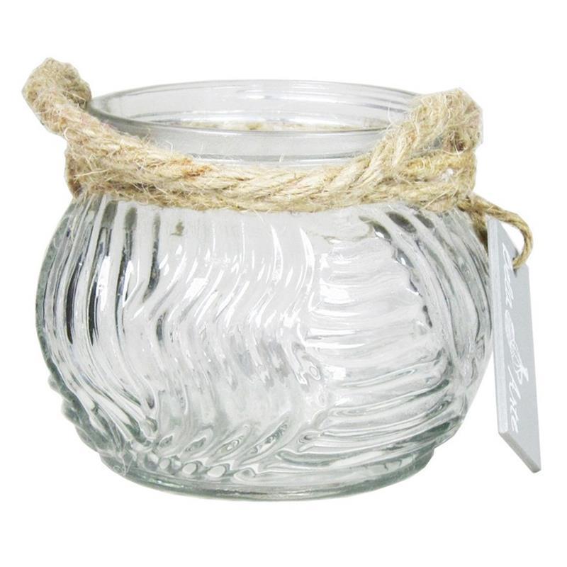 Portacandele FIDELMA in vetro, scanalature ondulate, trasparente, 9 cm, Ø 11,5 cm