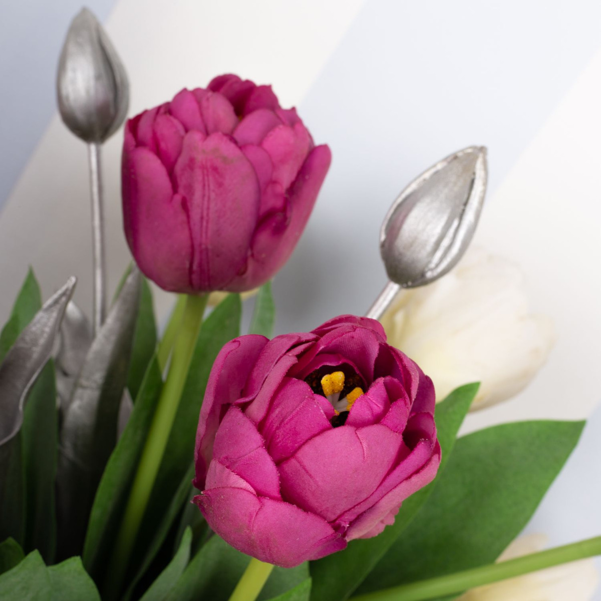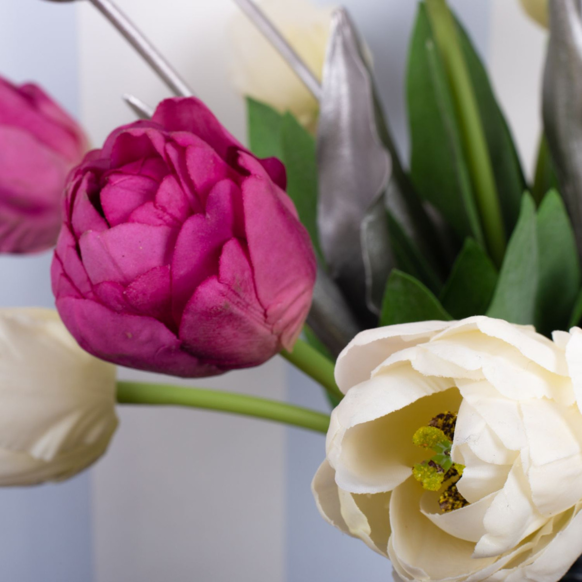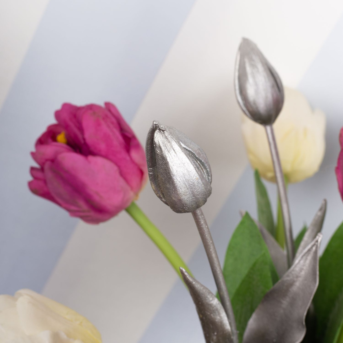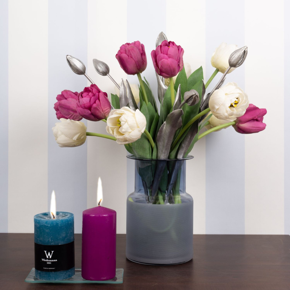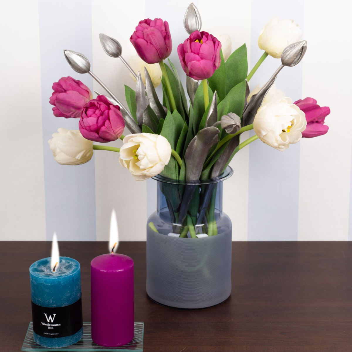 Pensa al rosa! Finalmente la primavera! Dopo un lungo inverno, stiamo letteralmente aspettando qualche raggio di sole e la primavera che ne consegue! Ma ancora prima che i tulipani inizino a sbocciare in natura, possiamo portare la stagione colorata nelle nostre case. I nostri tulipani rosa e bianchi sembrano così veri che bisogna guardare due volte per rendersi conto che si tratta di fiori artificiali. I tulipani argentati rendono il look particolarmente moderno e unico. Chi pensa che il tempo delle candele sia finito con la stagione fredda si sbaglia. Le persone amano accendere una candela anche a Pasqua. Portate la primavera in casa vostra! Acquistate il look!