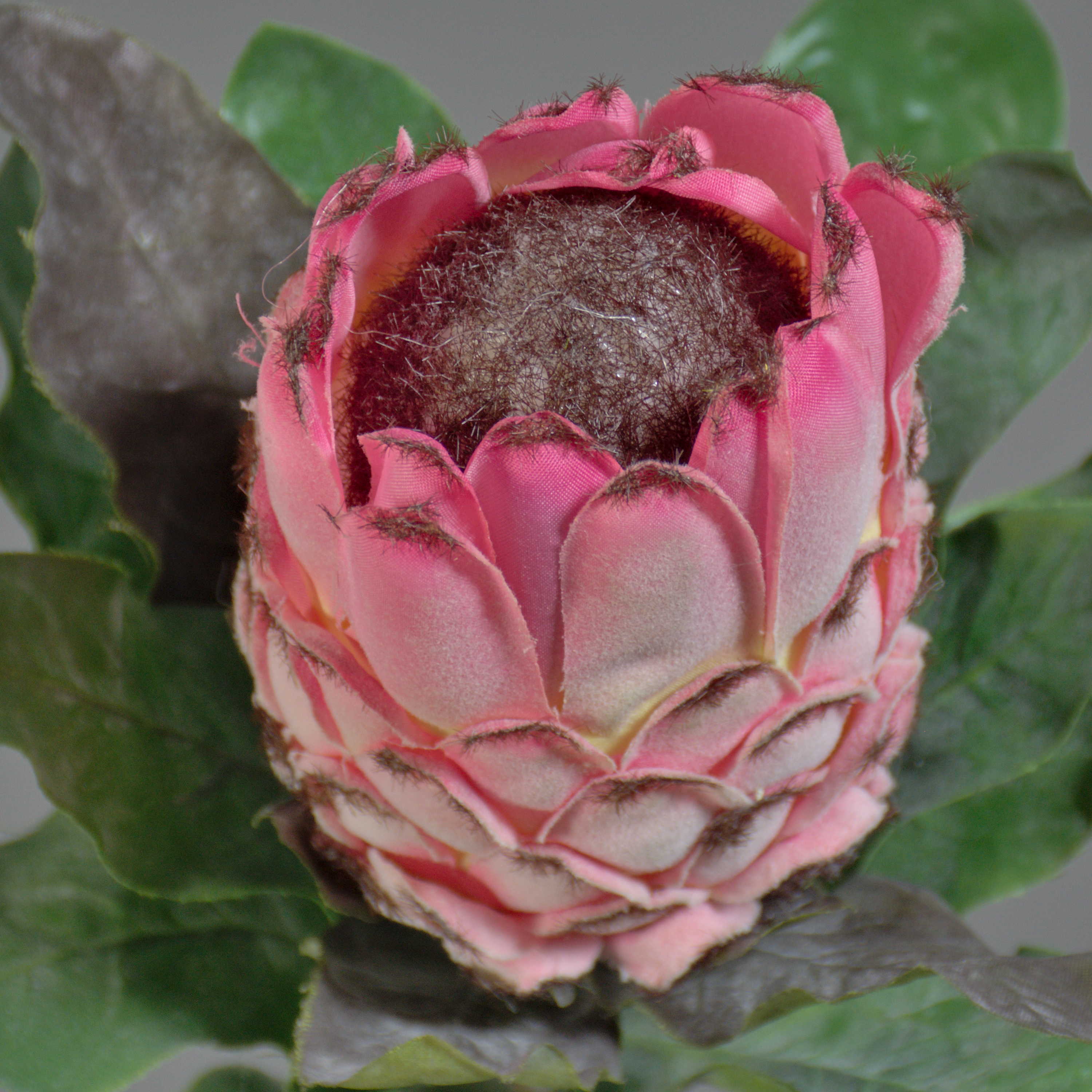 Protea artificiale NELLI con una lunghezza totale di ca. 75 cm e di colore rosa.