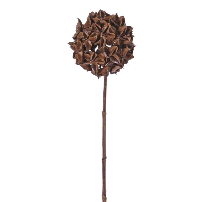 Ramo finto di anice stellato marrone CATBERT. Con la sua altezza di 70 cm, può essere sistemato bene in un grande vaso da terra insieme ad altri fiori artificiali.