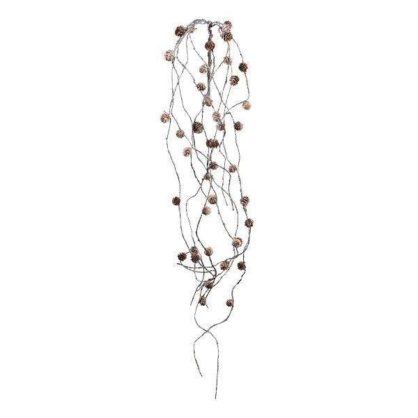 Ramo artificiale di larice ZALMET con pigne, pendente, congelato, bianco, 150 cm
