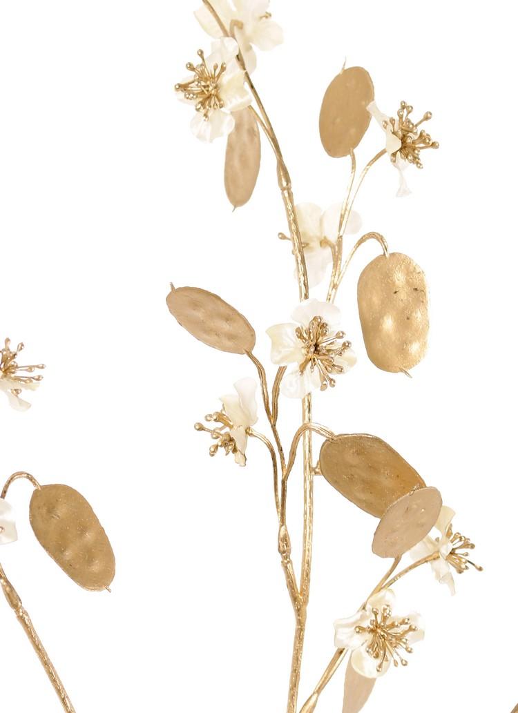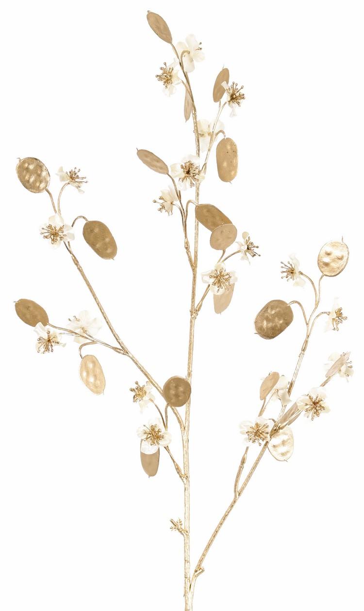 Ramo artificiale di Lunaria in raso PINDUS con fiori, bianco-oro, 85 cm