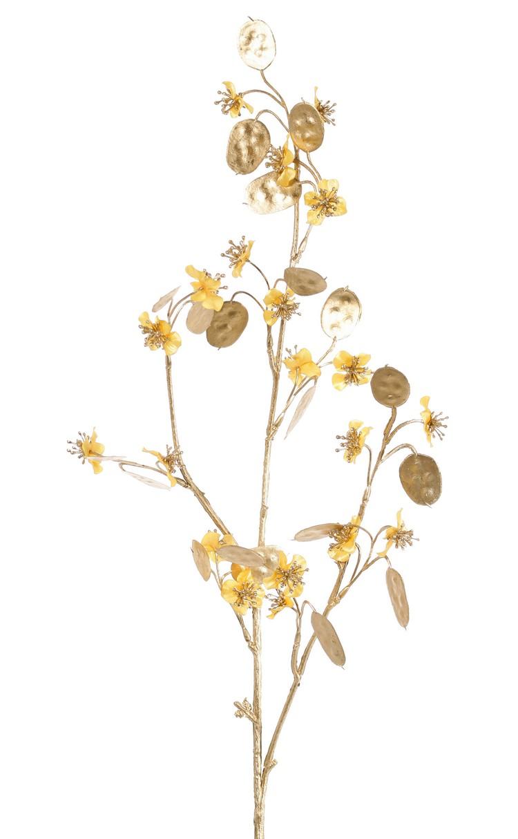 Ramo artificiale di lunaria in raso PINDUS con fiori, giallo-oro, 85 cm