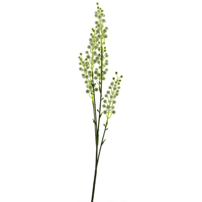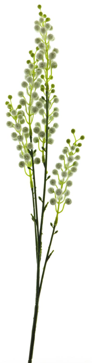 Ramo artificiale di mimosa CHENWU, fiori, bianco-verde, 70 cm