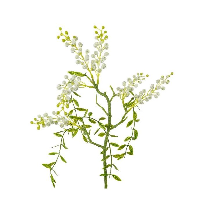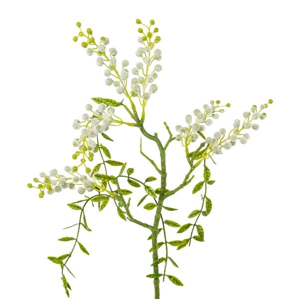 Ramo artificiale mimosa KRAVEL con boccioli, pendente, bianco, 60 cm