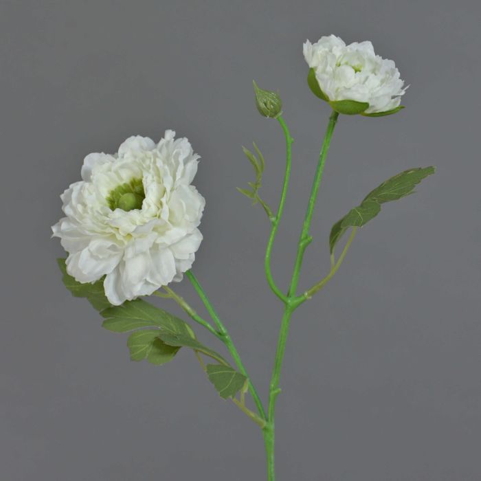 Ramo artificiale ranuncolo SAGARA, bianco-verde, 45 cm, Ø 5-8 cm