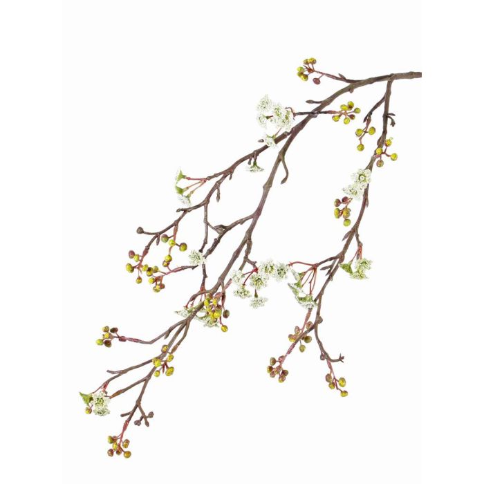 Ramo d'acero sintetico TABIO, con fiori, bianco-verde, 95cm