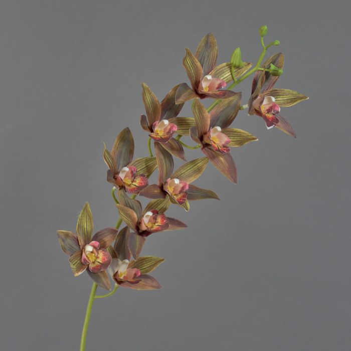 Ramo decorativo di orchidea cymbidium YAMEI, rosso scuro-verde, 80cm