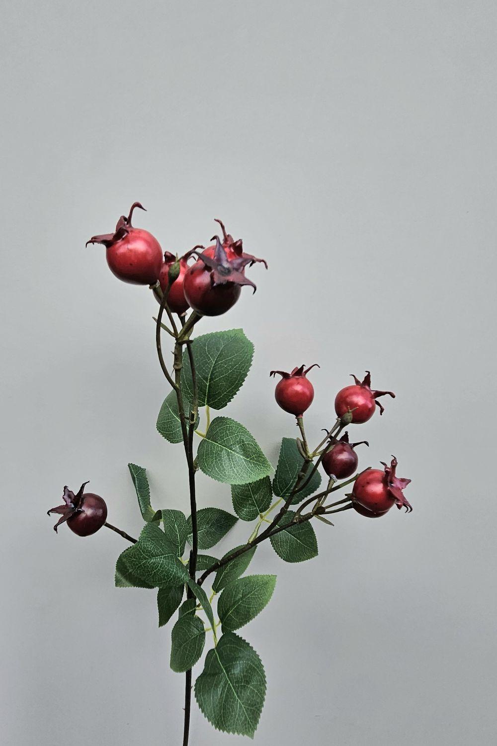 Ramo decorativo di rosa di patata LOPUNY con bacche di rosa canina, rosso, 70 cm