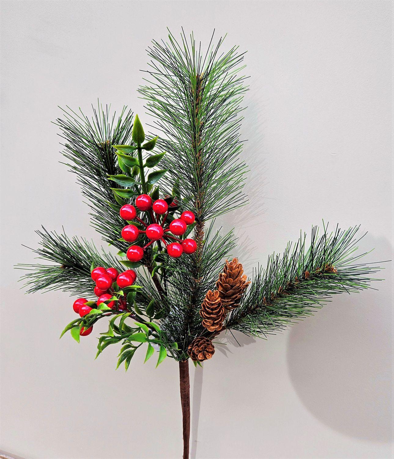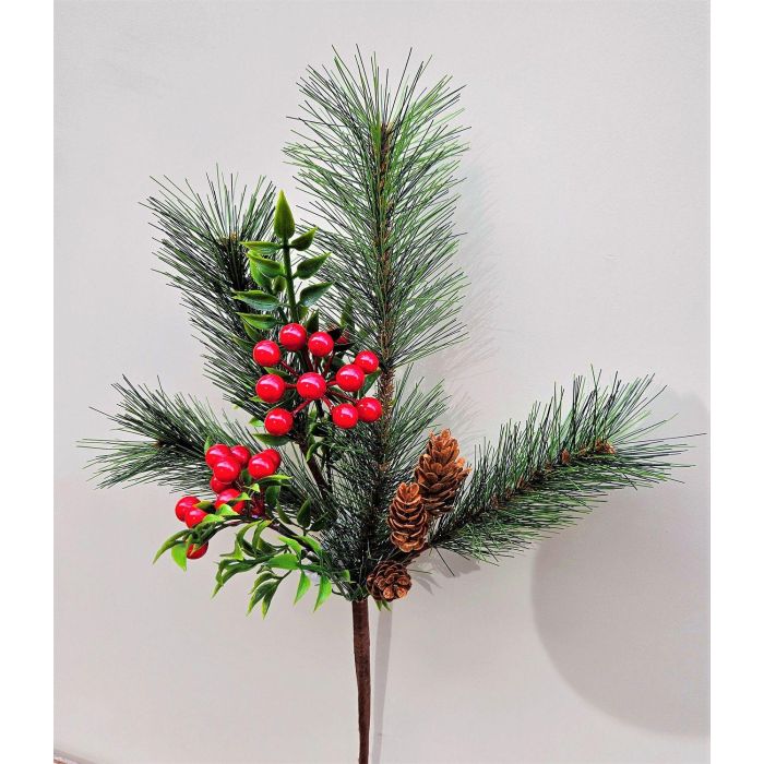 Ramo decorativo FREDEGONDA, pino, bacche di sorbo, pigne, rosso-verde, 65 cm