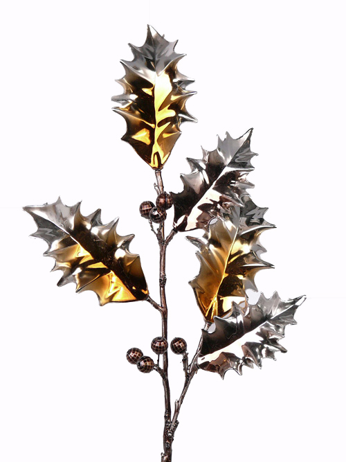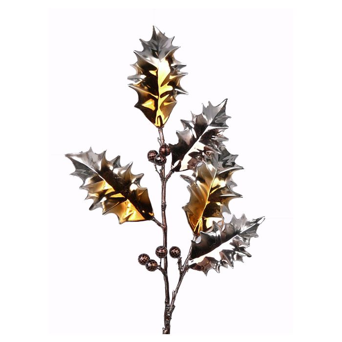 Ramo di agrifoglio artificiale PASCHA con frutti, argento-dorato, 50cm