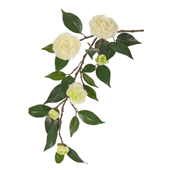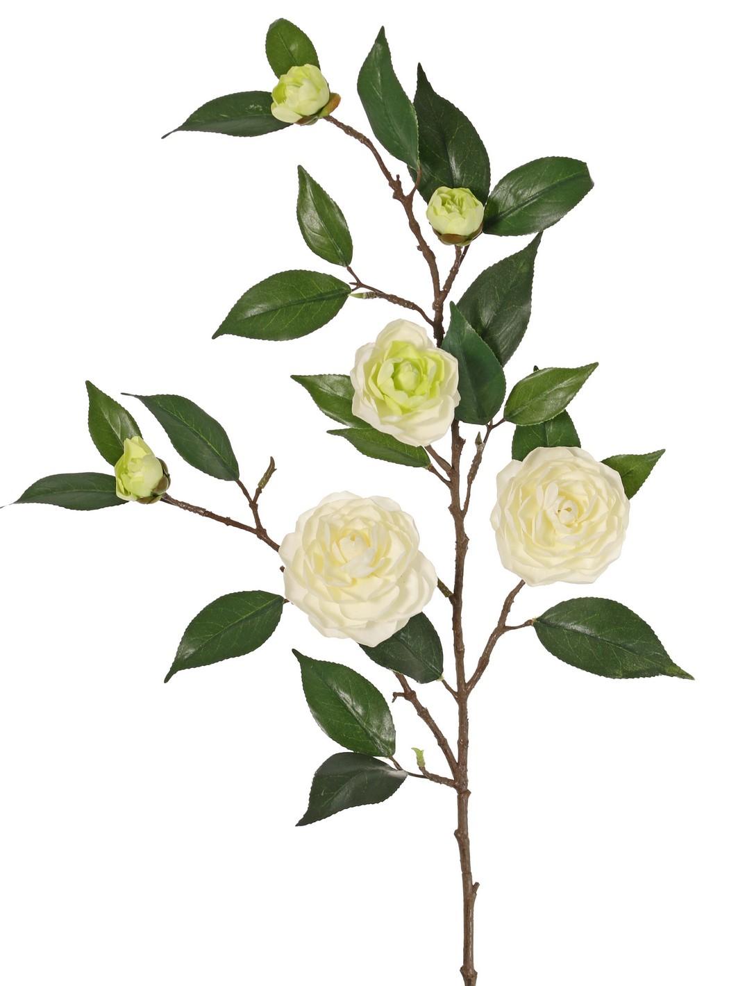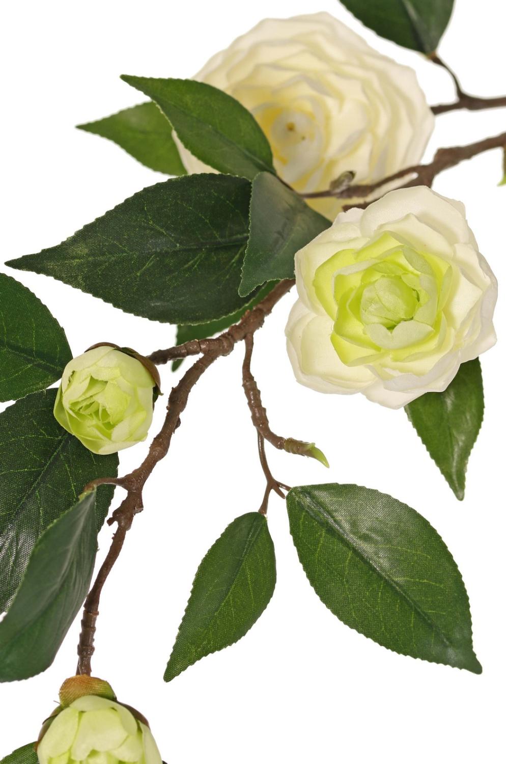 Ramo di camelia artificiale YARINA con fiori, crema-verde, 75 cm