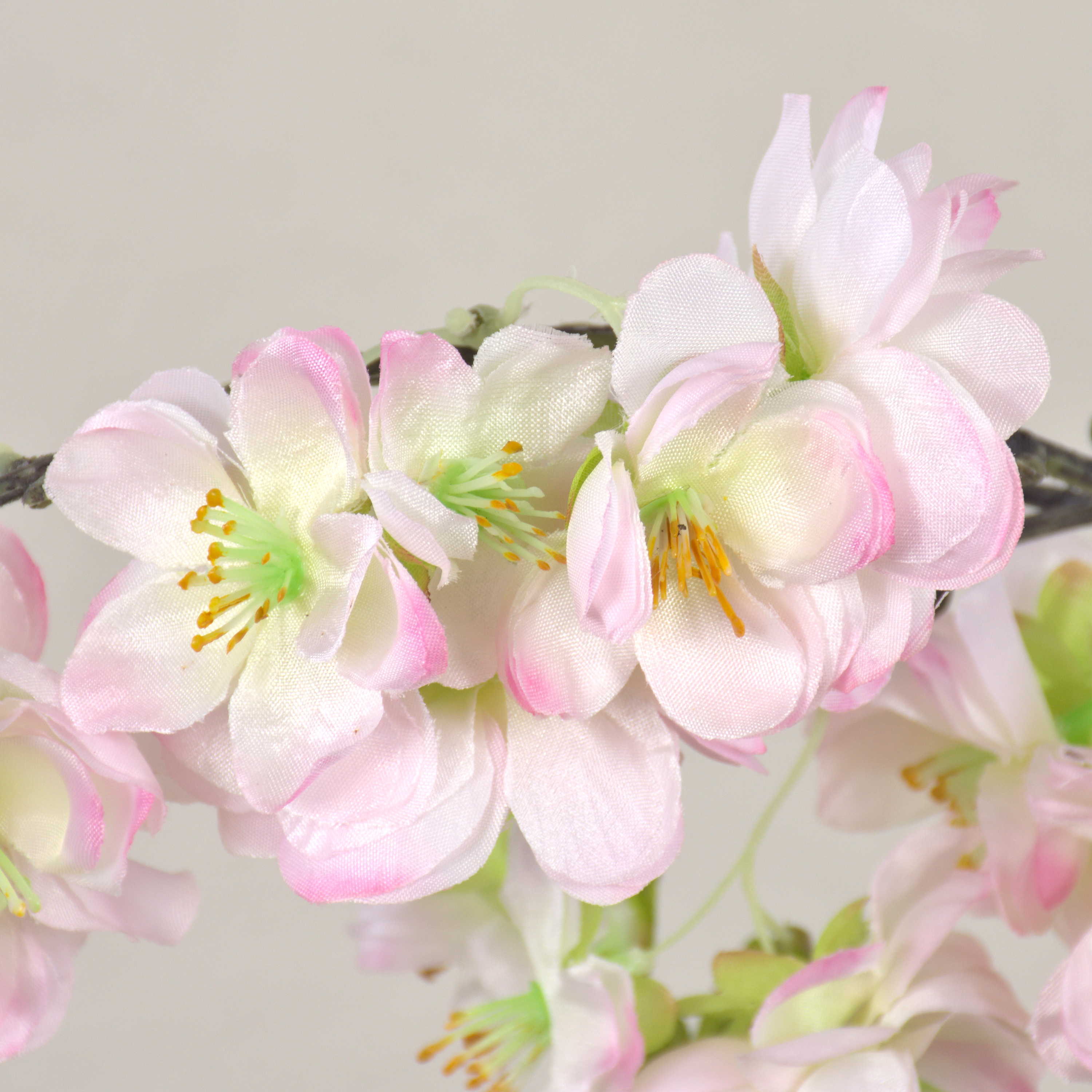 Grazioso rametto di ciliegio decorativo VALESKA con numerosi fiori in fibra tessile di colore rosa chiaro, per eleganti decorazioni a tema primaverile. Il ramo fiorito artificiale msura complessivamente ca. 105 cm di lunghezza ed é ideale per la decorazione di vasi alti in ingressi e vetrine.