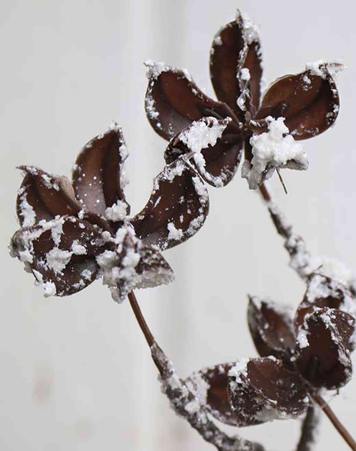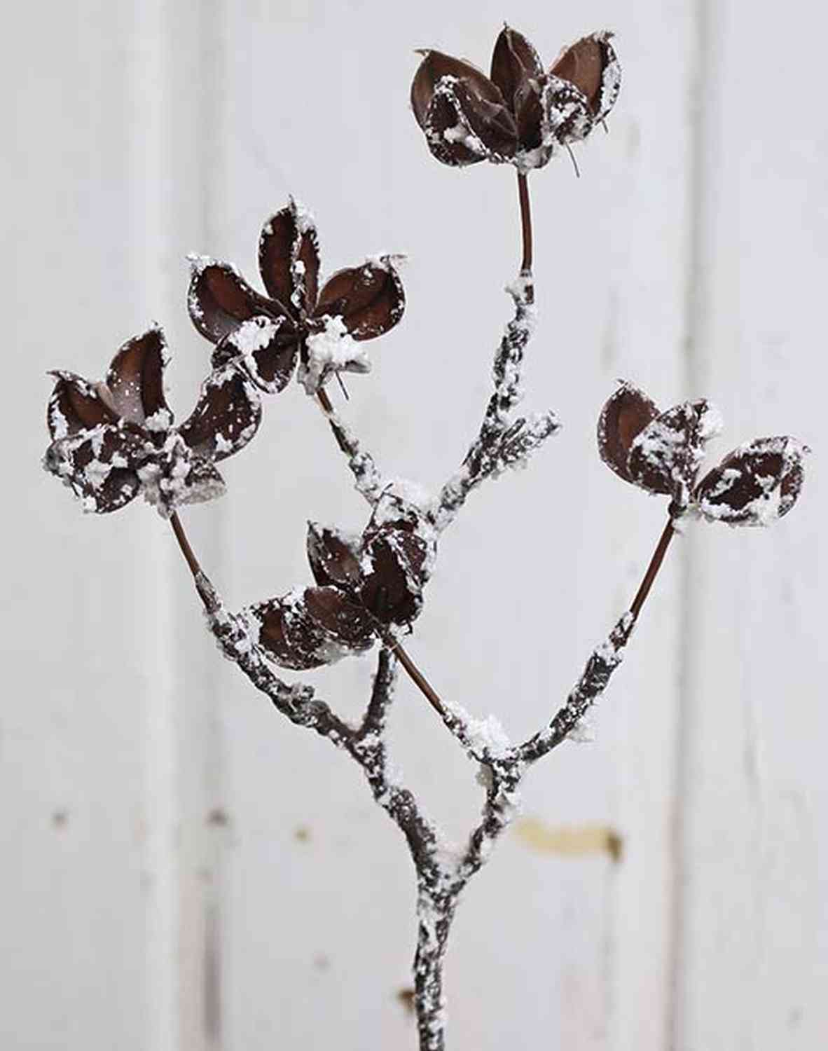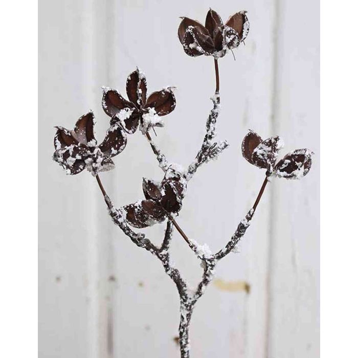 Ramo di cotone di plastica NIRO, frutta, innevato, marrone-bianco, 30cm