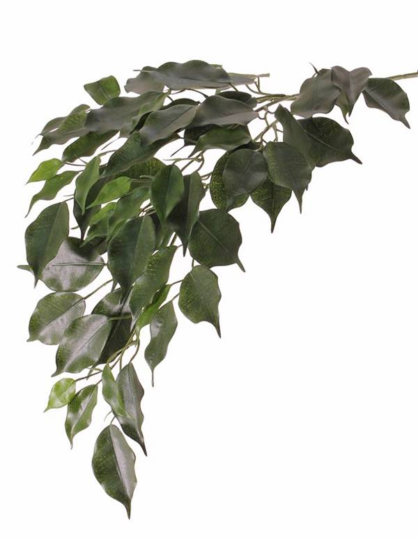 Ramo artificiale di ficus benjamini YUGI con una lunghezza totale di ca. 75 cm e di colore verde.