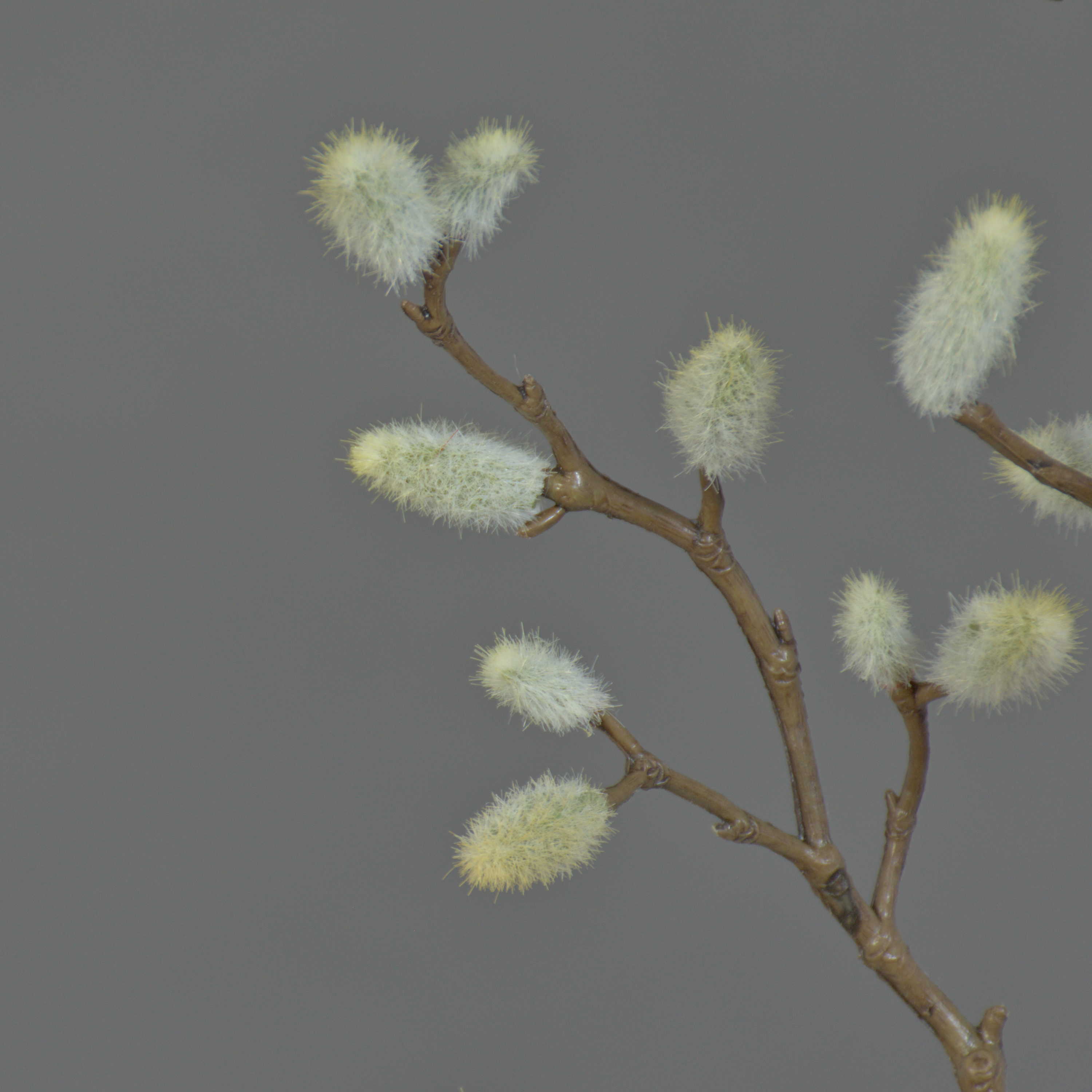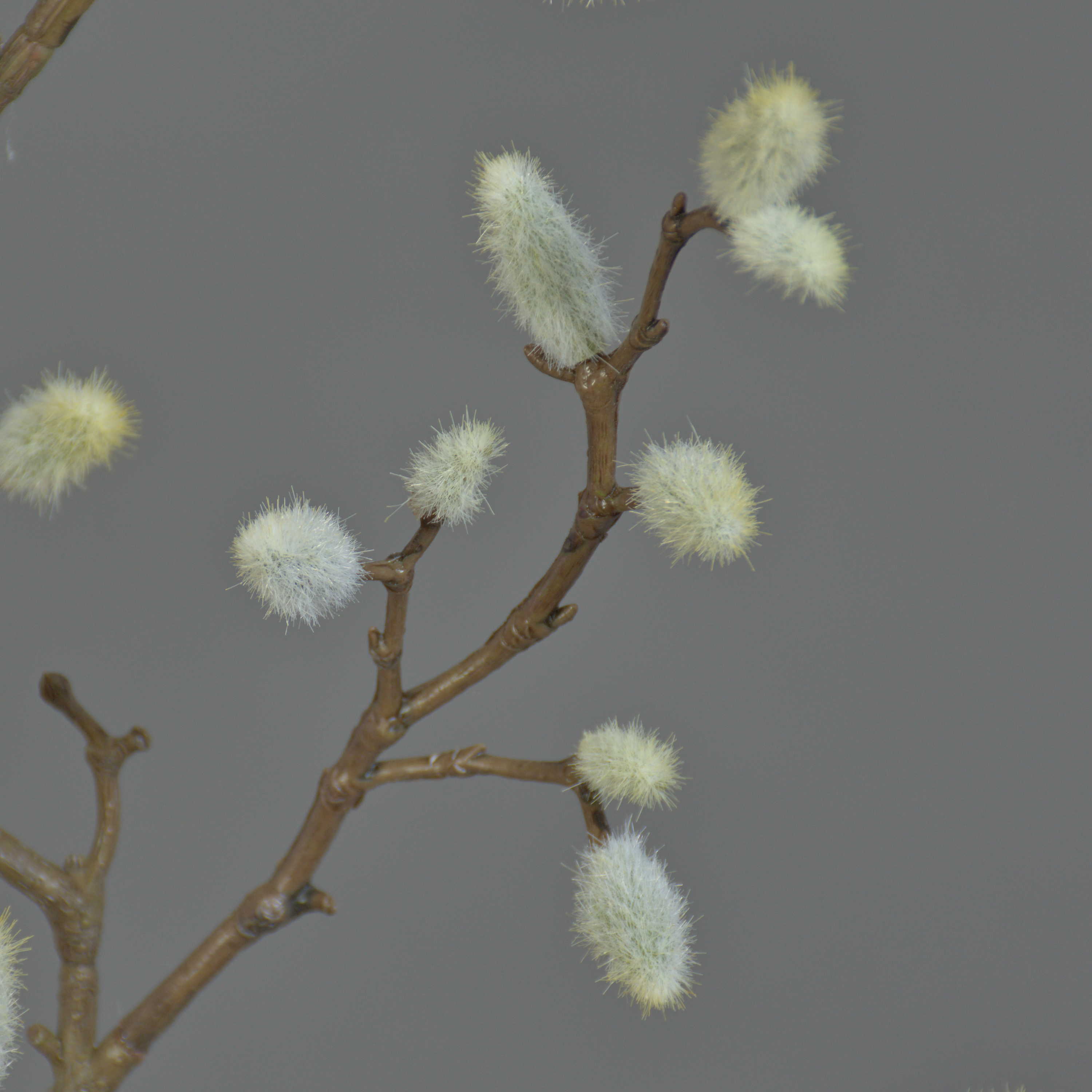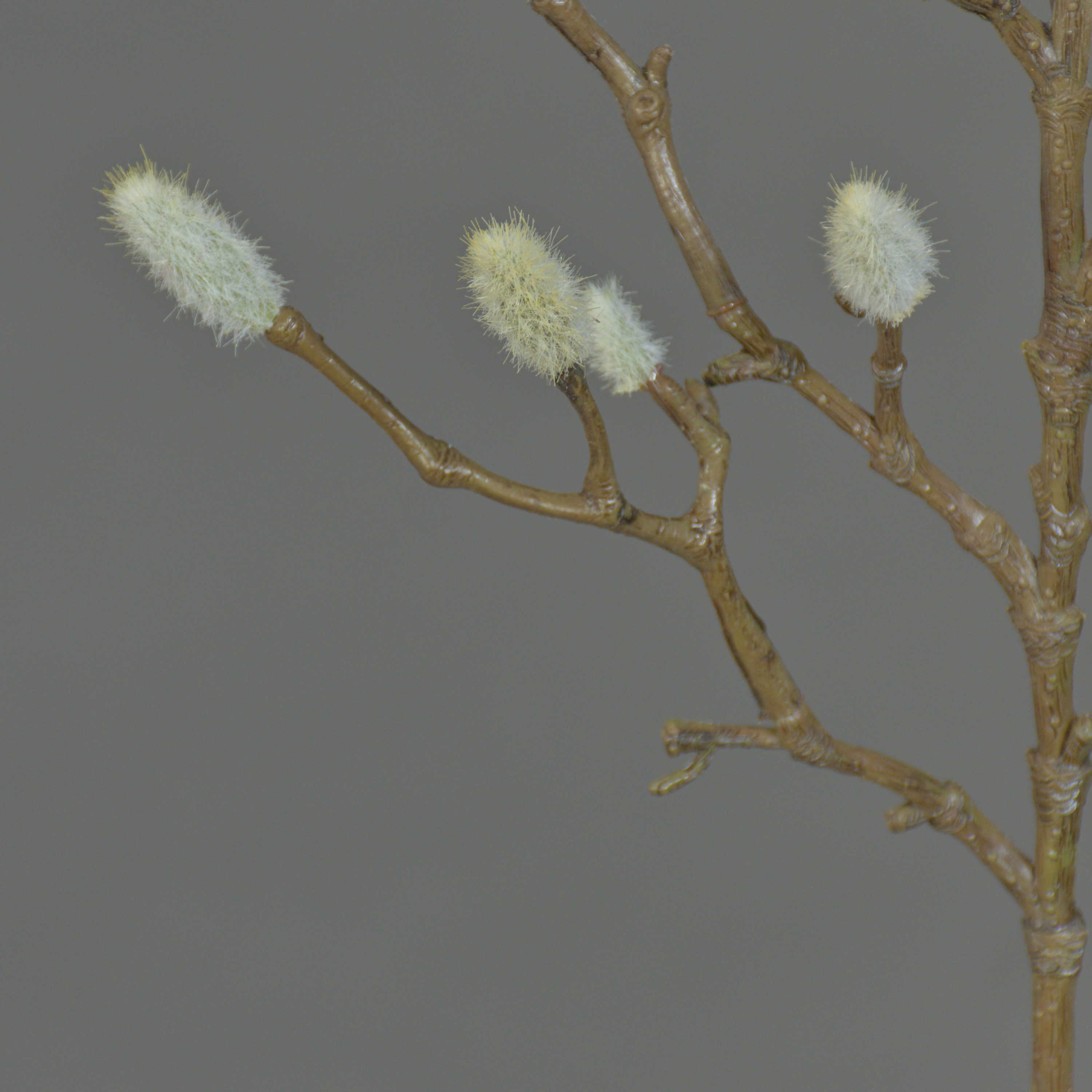 Il ramo in plastica di magnolia finemente lavorato KOTORI ha ca. 40 amenti grigi e una lunghezza totale di ca. 75 cm.