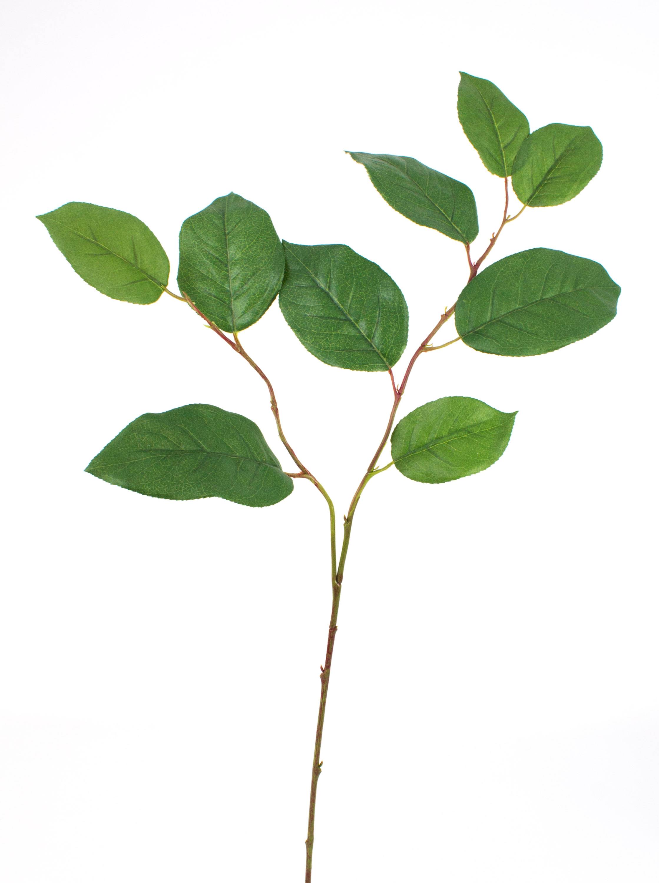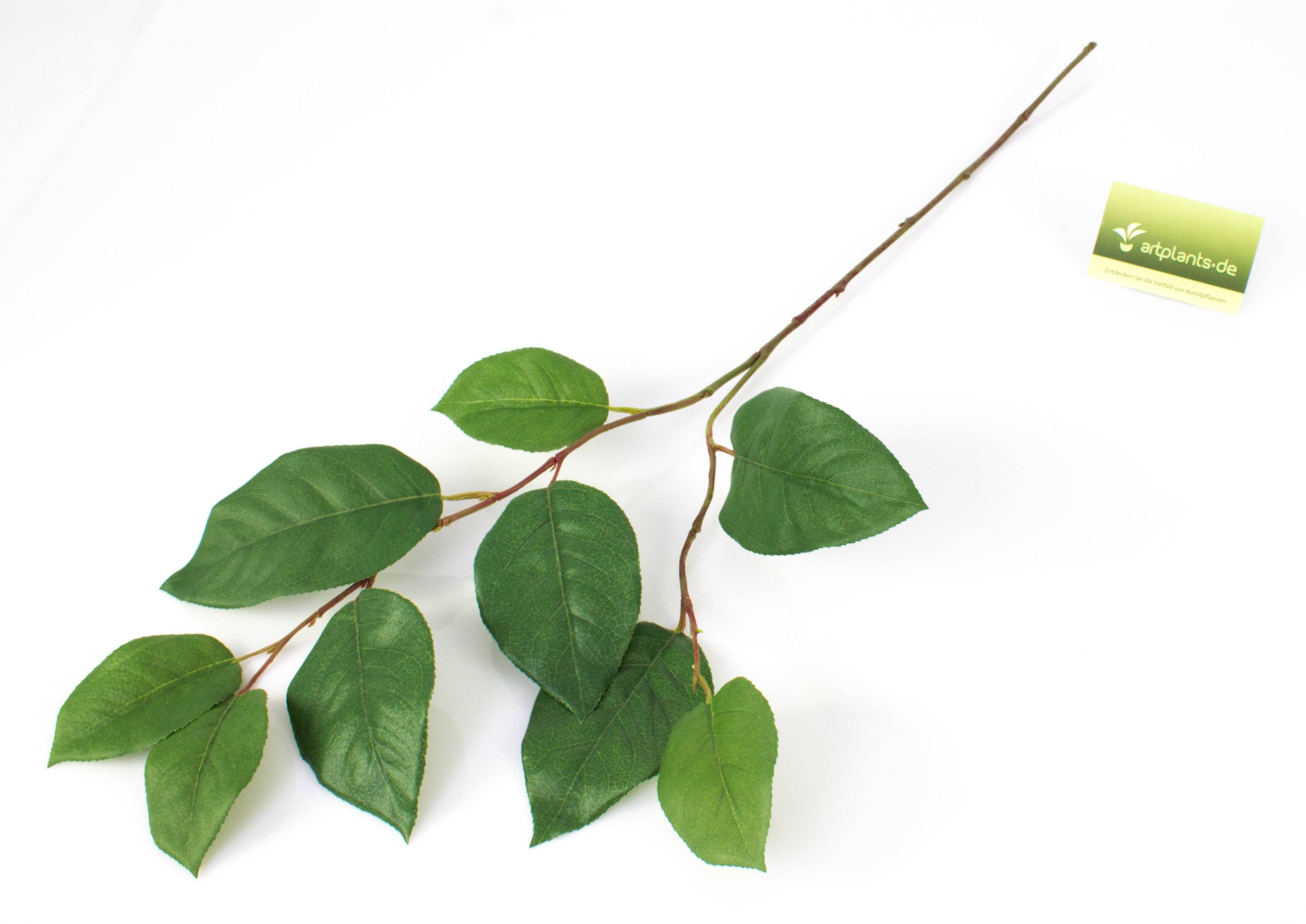 Ramo di melo artificiale con diramazione e 9 foglie in materiale tessile. Il ramo ha una lunghezza di ca. 75 cm.