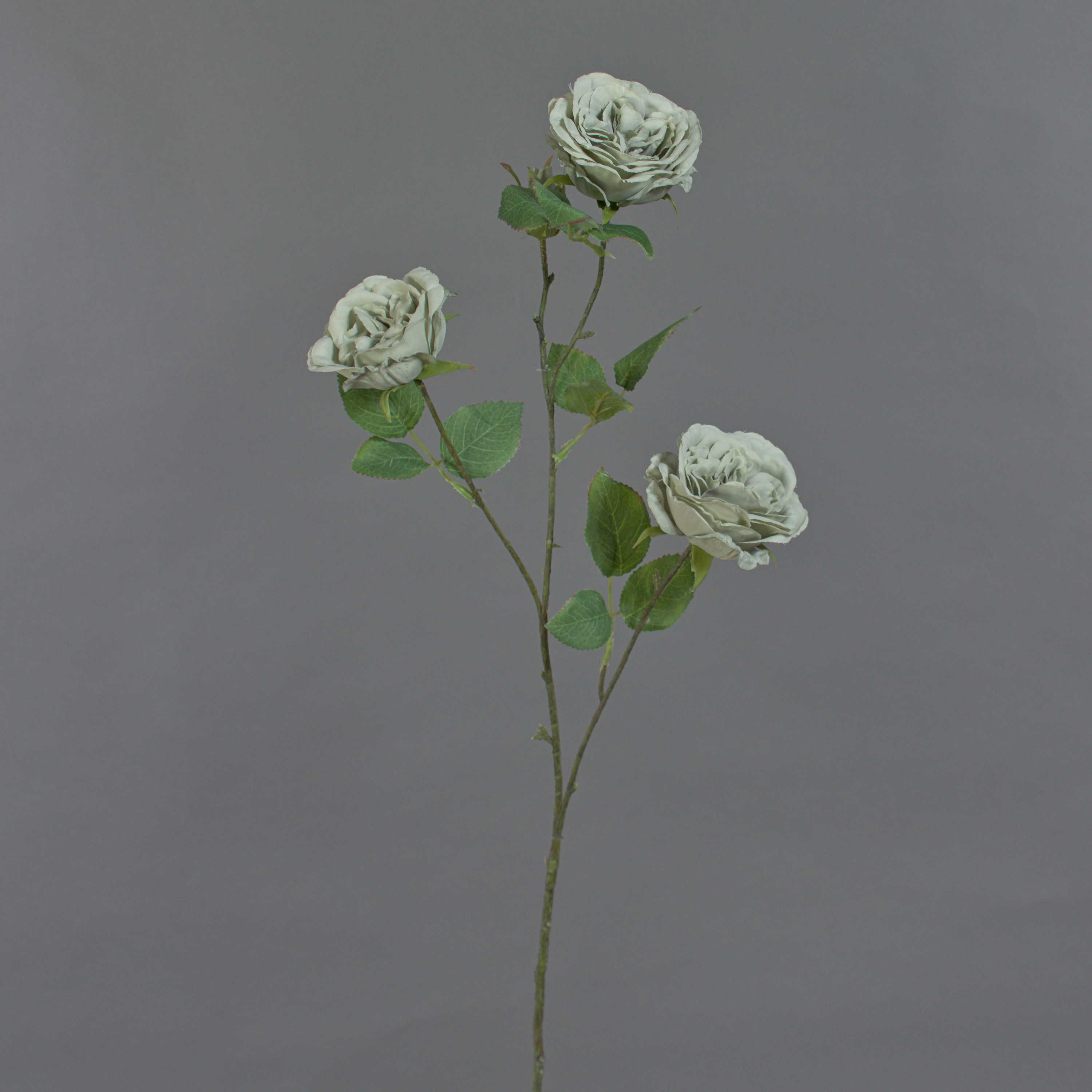 Il ramo di rose finte GITTI ha 3 fiori e un bocciolo di colore verde chiaro-grigio. Il ramo di plastica decora soggiorni da solo o mescolato in un vaso a stelo. La rosa artificiale ha una lunghezza totale di ca. 80 cm.