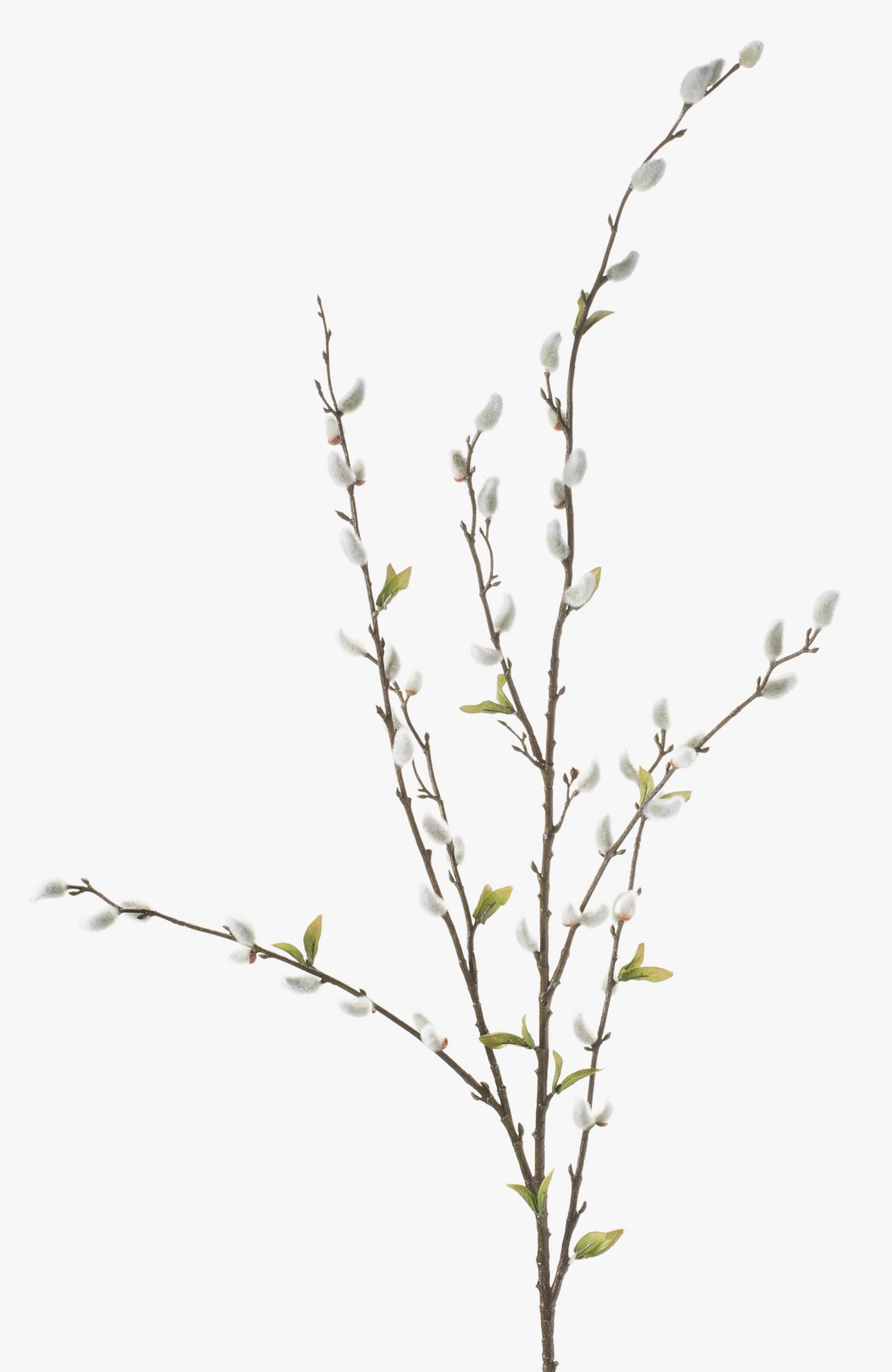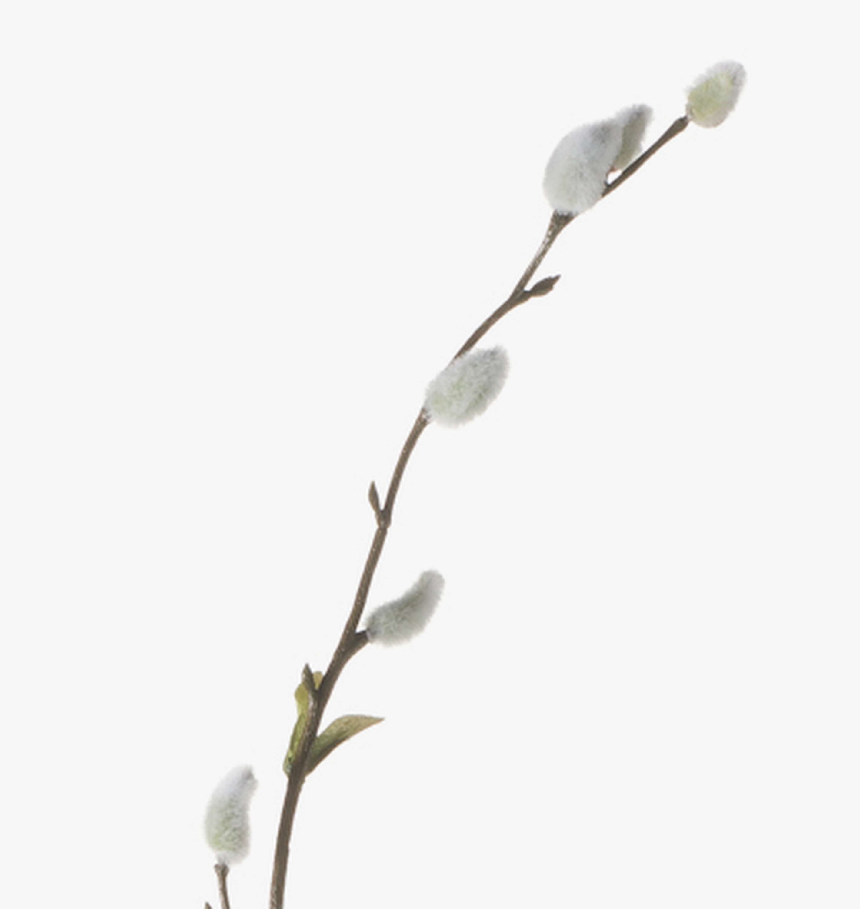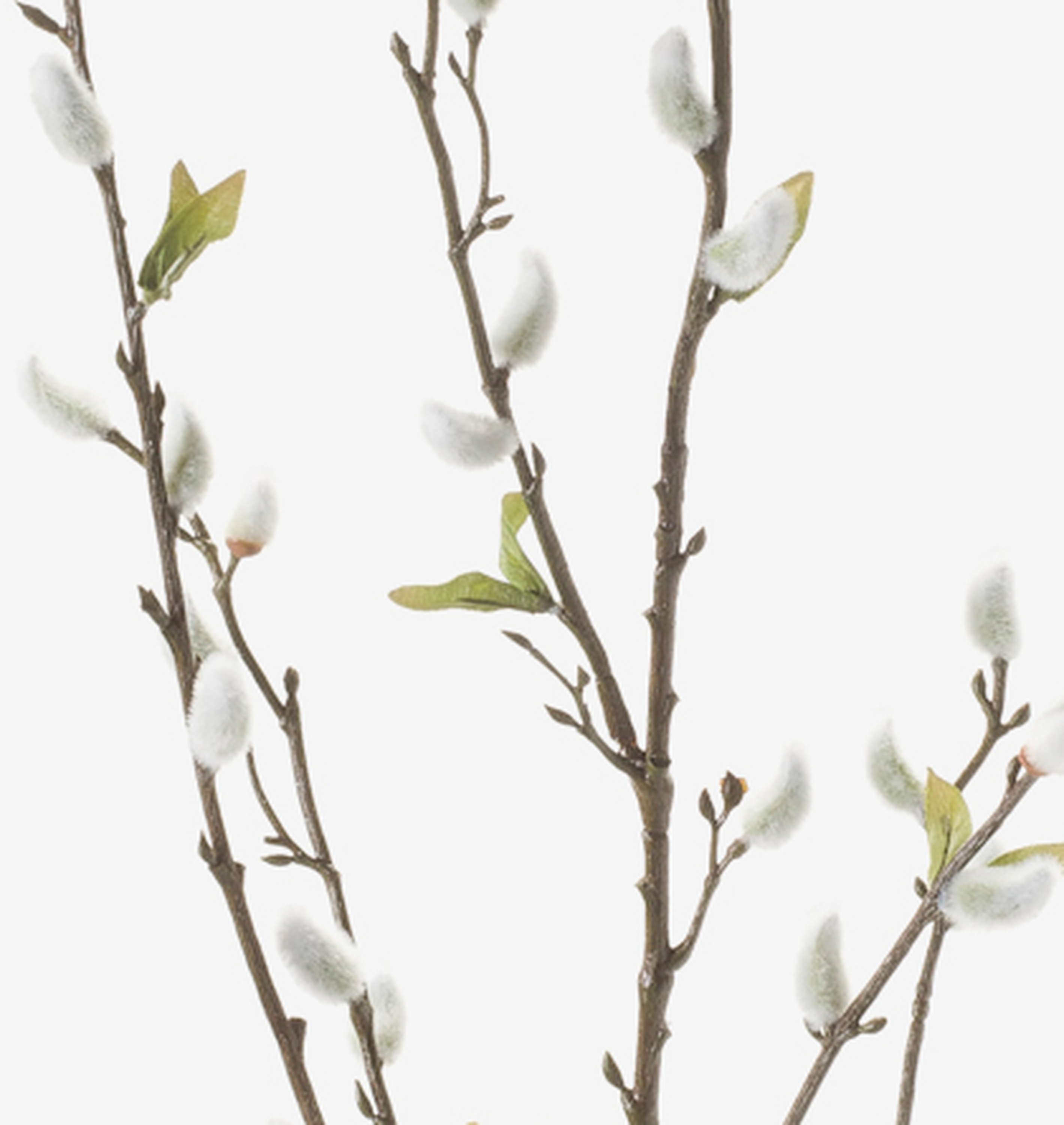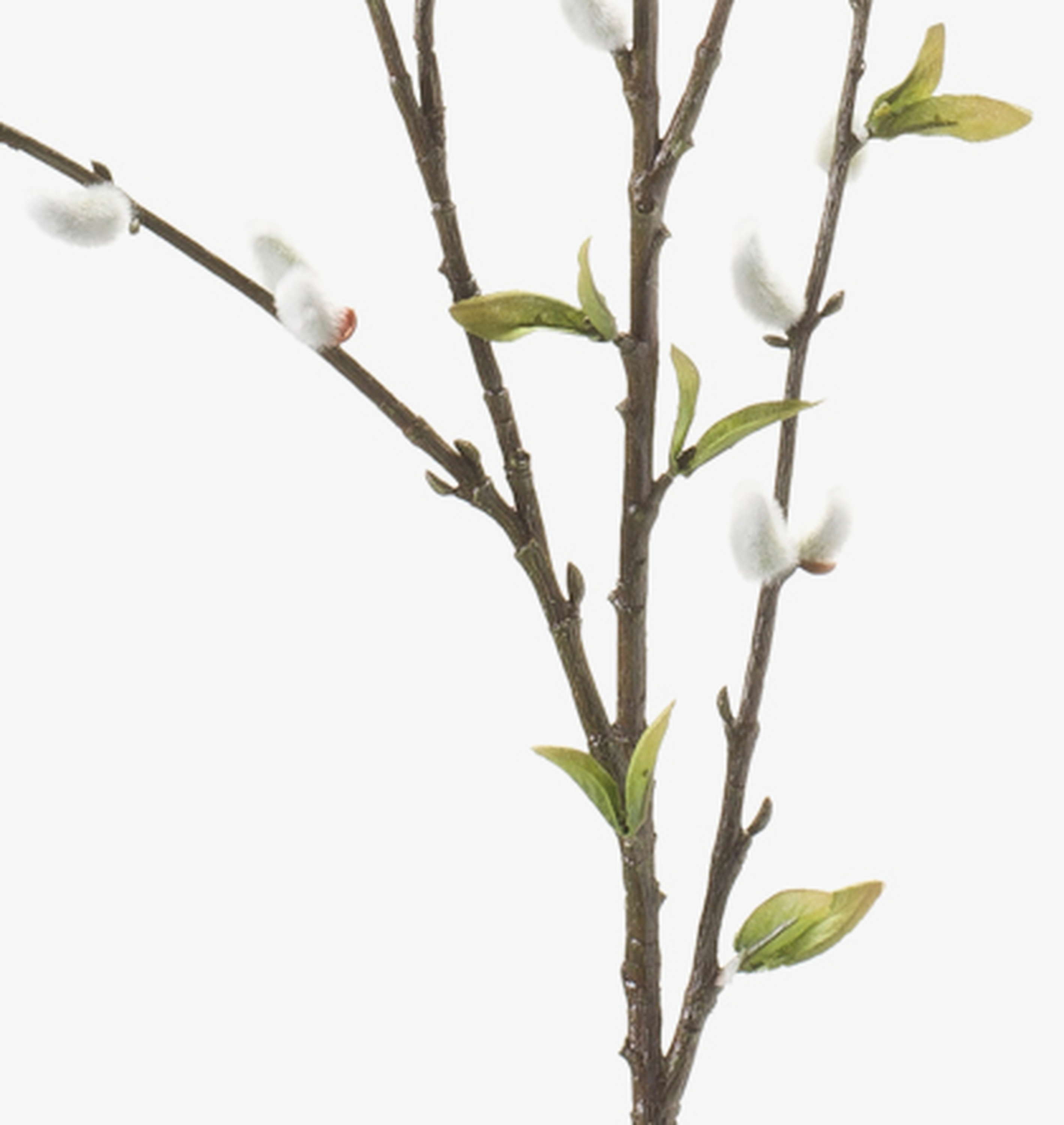 Ramo di salice fiorito (i cui fiori sono noti anche come gattici) finemente lavorato. Il ramo ha 55 piccole infiorescenze grigie e misura ca. 120 cm lunghezza. Funge da graziosa decorazione da vaso per la primavera o per Pasqua.