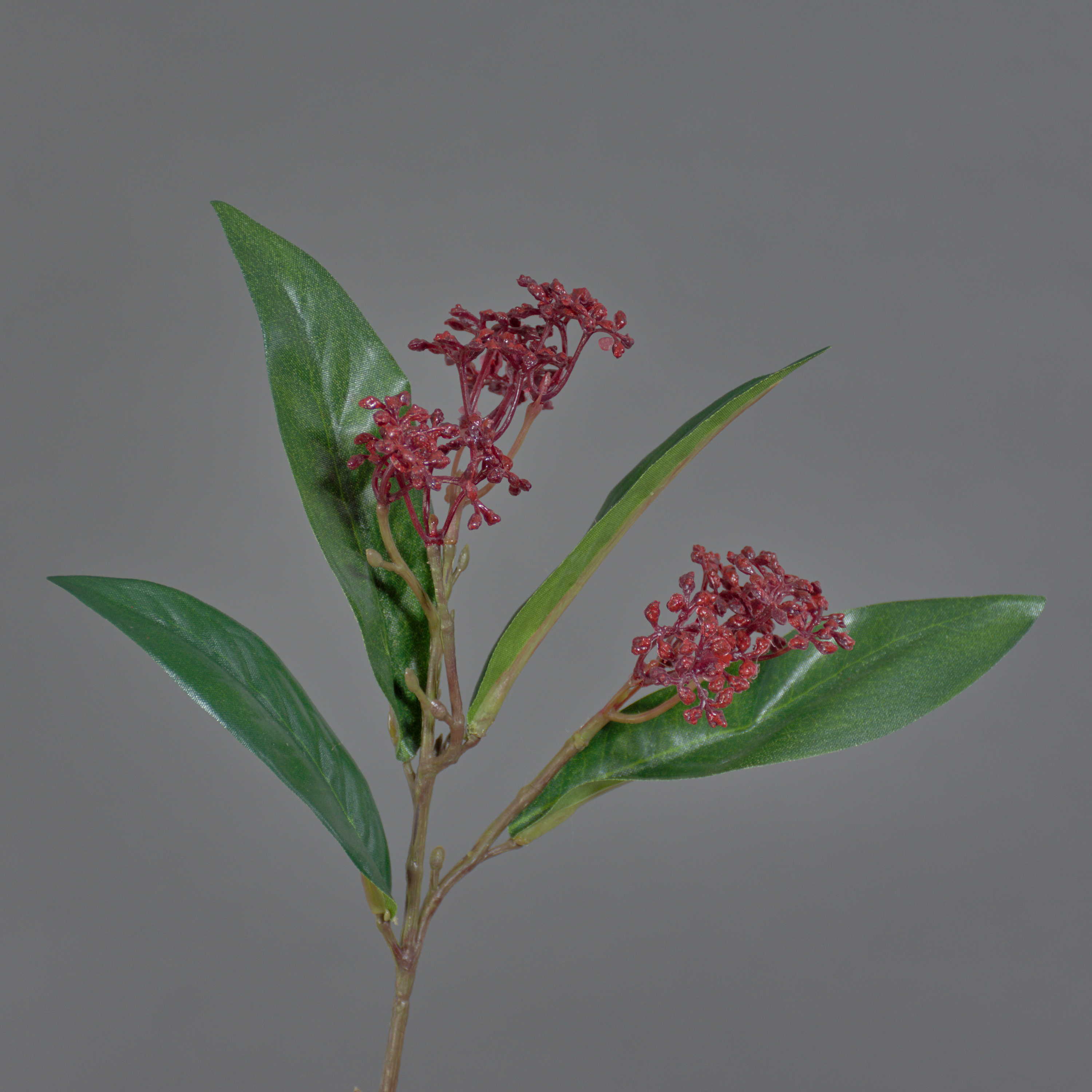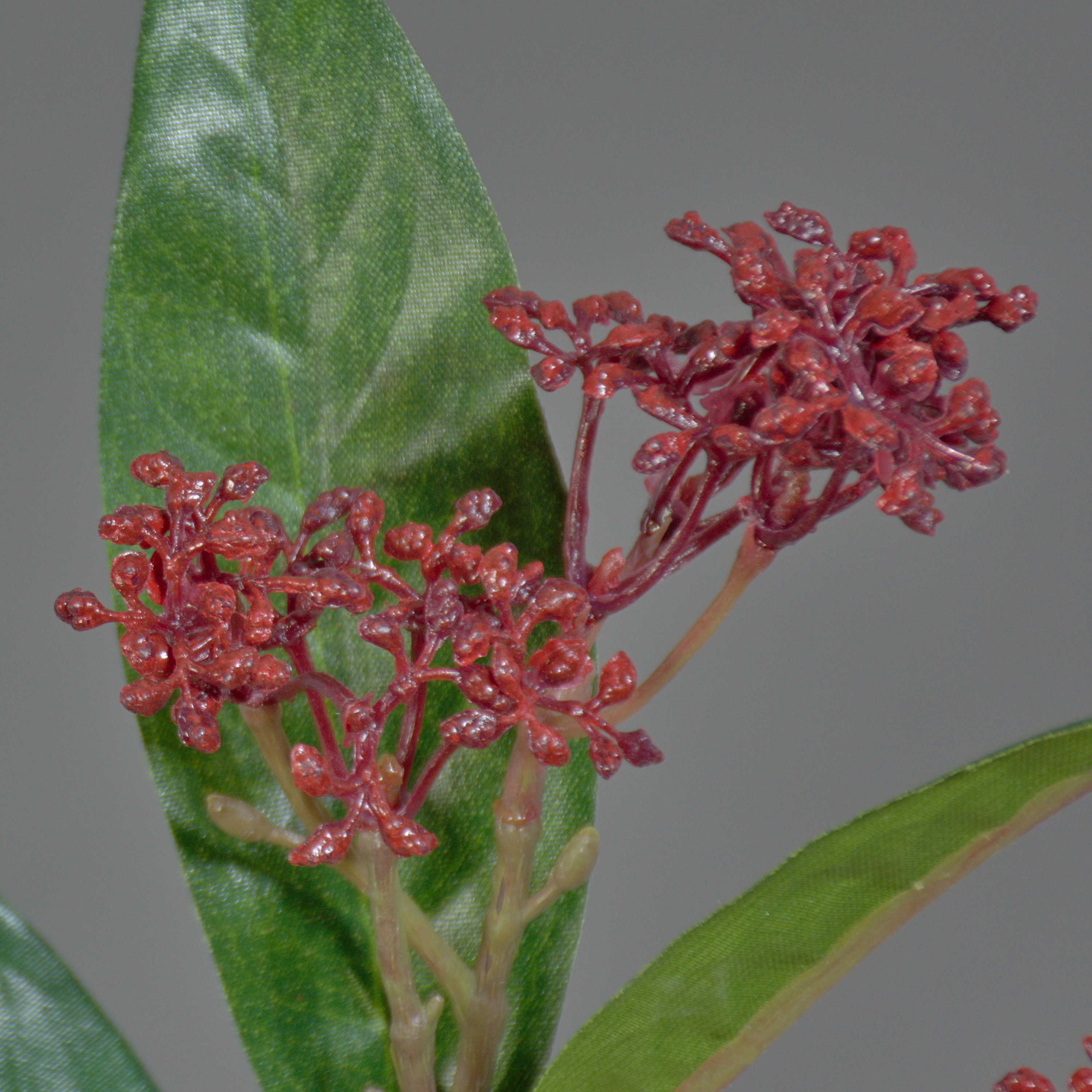 Skimmia japonica artificiale EBONY con una lunghezza totale di ca. 35 cm e di colore rosso.