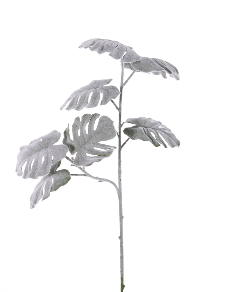 Ramo finto di filodendro Monstera Deliciosa NUBIE, ghiacciato, grigio, 70cm
