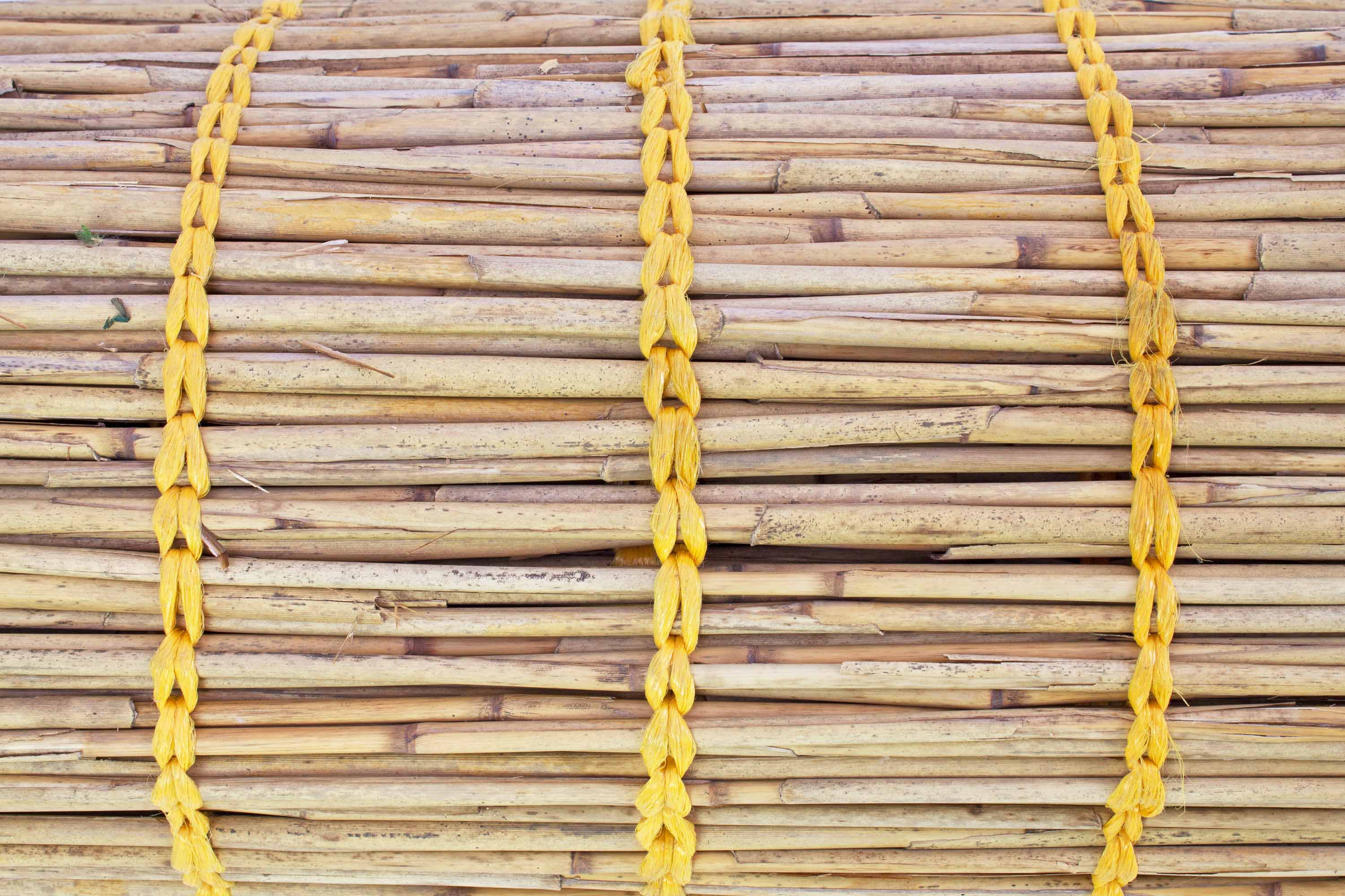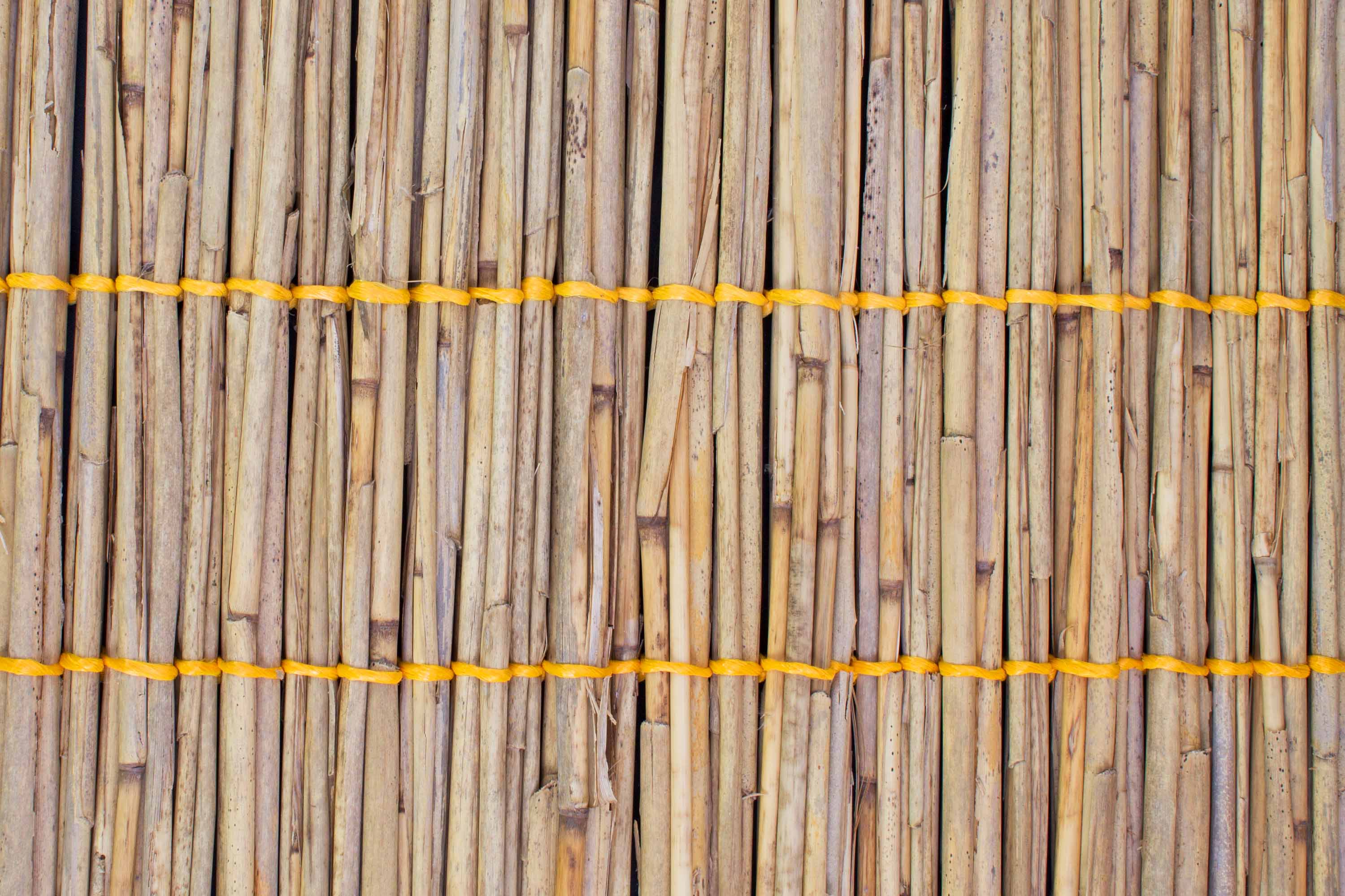 - Elemento di schermo visivo composto da canna naturale saldamente intrecciata con filo di nylon giallo