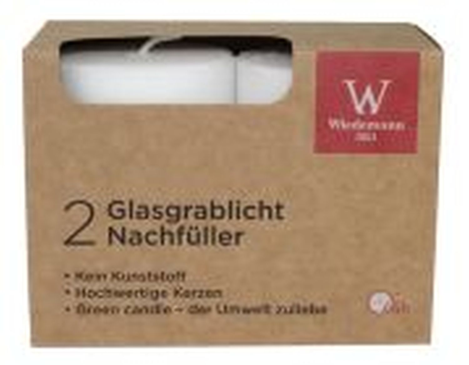 Ricarica per candela da tomba in vetro SELENIA, 2 pezzi, bianca, 8,5 cm, Ø 5,7 cm, 44 h