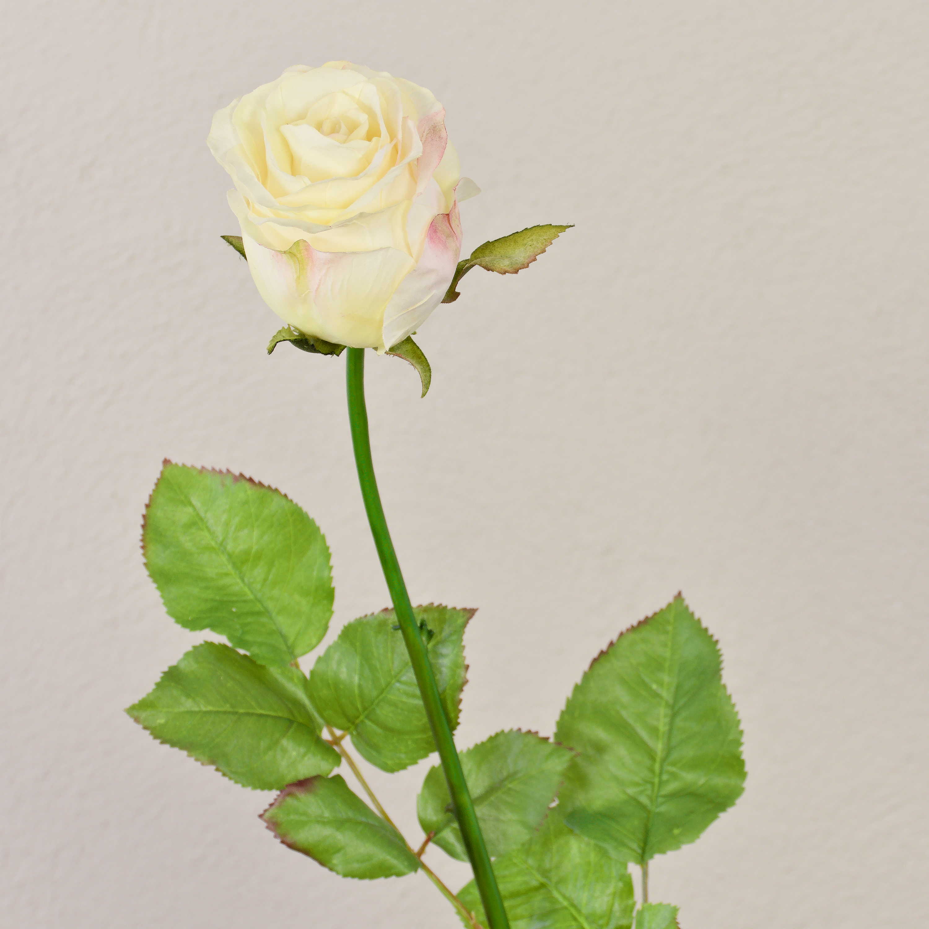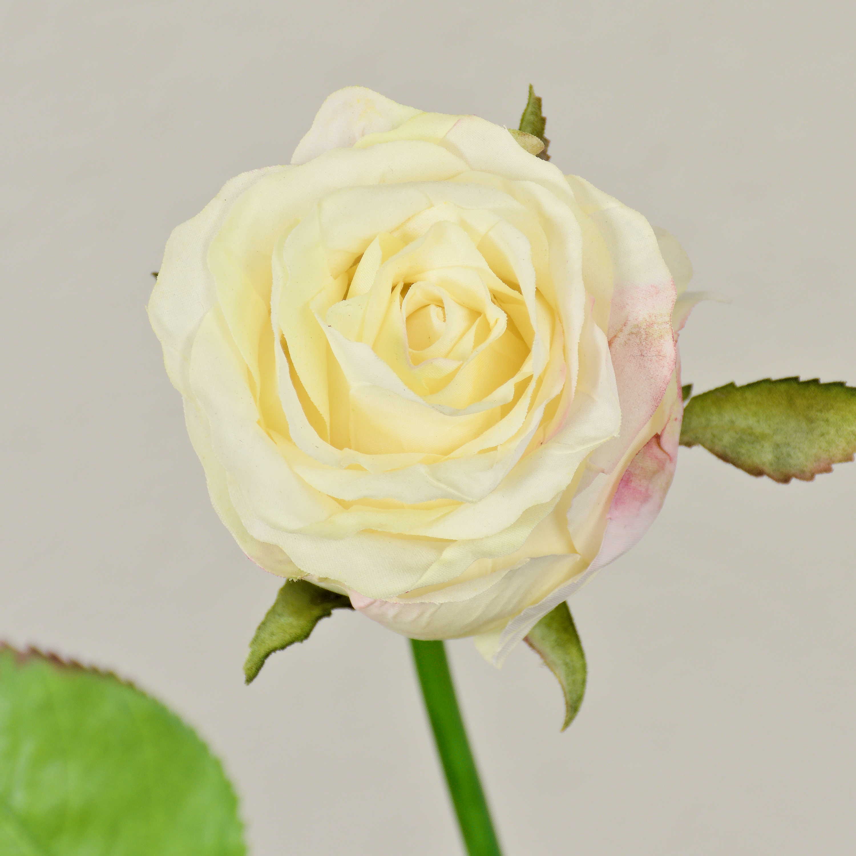 Rosa artificiale OPHELIE, crema-rosa, 85cm, Ø7cm
