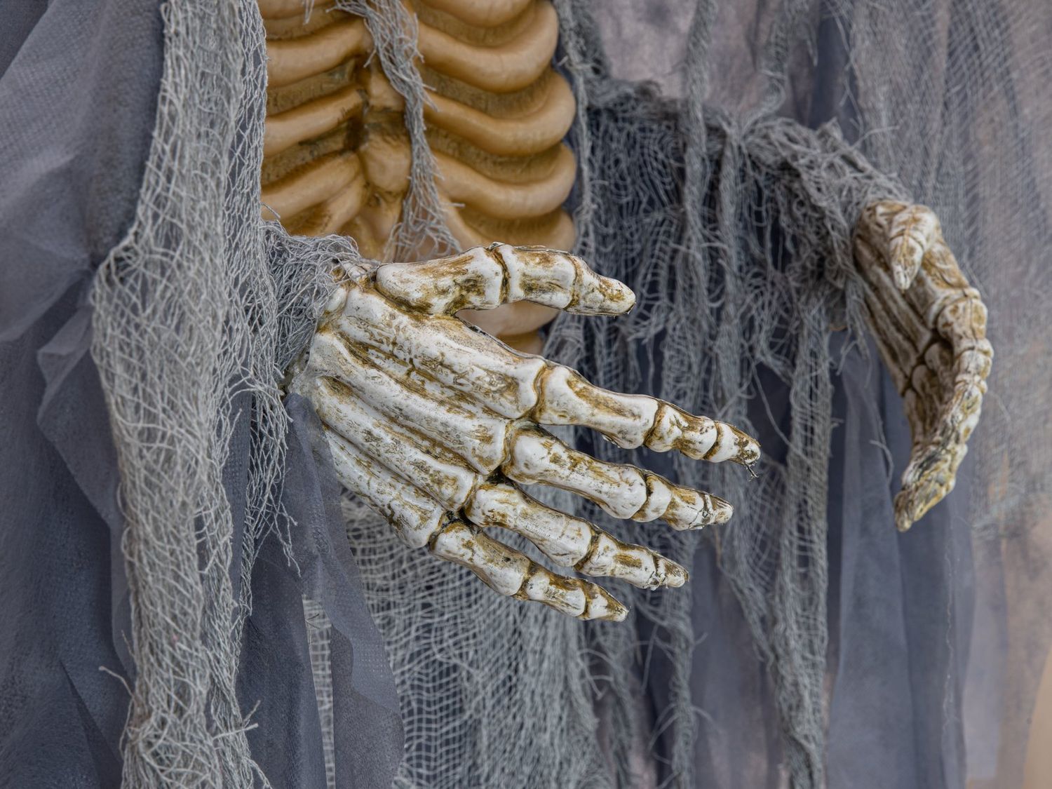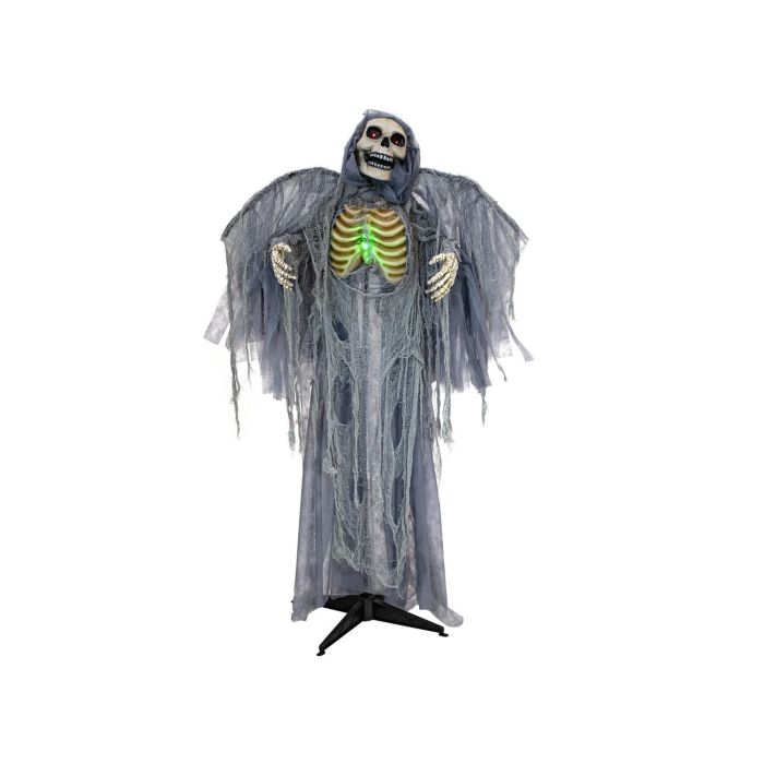 Scheletro d'angelo della Morte decorazione di Halloween HALDOR con ali, funzione movimento-suono, LED, grigio, 100x60x175cm