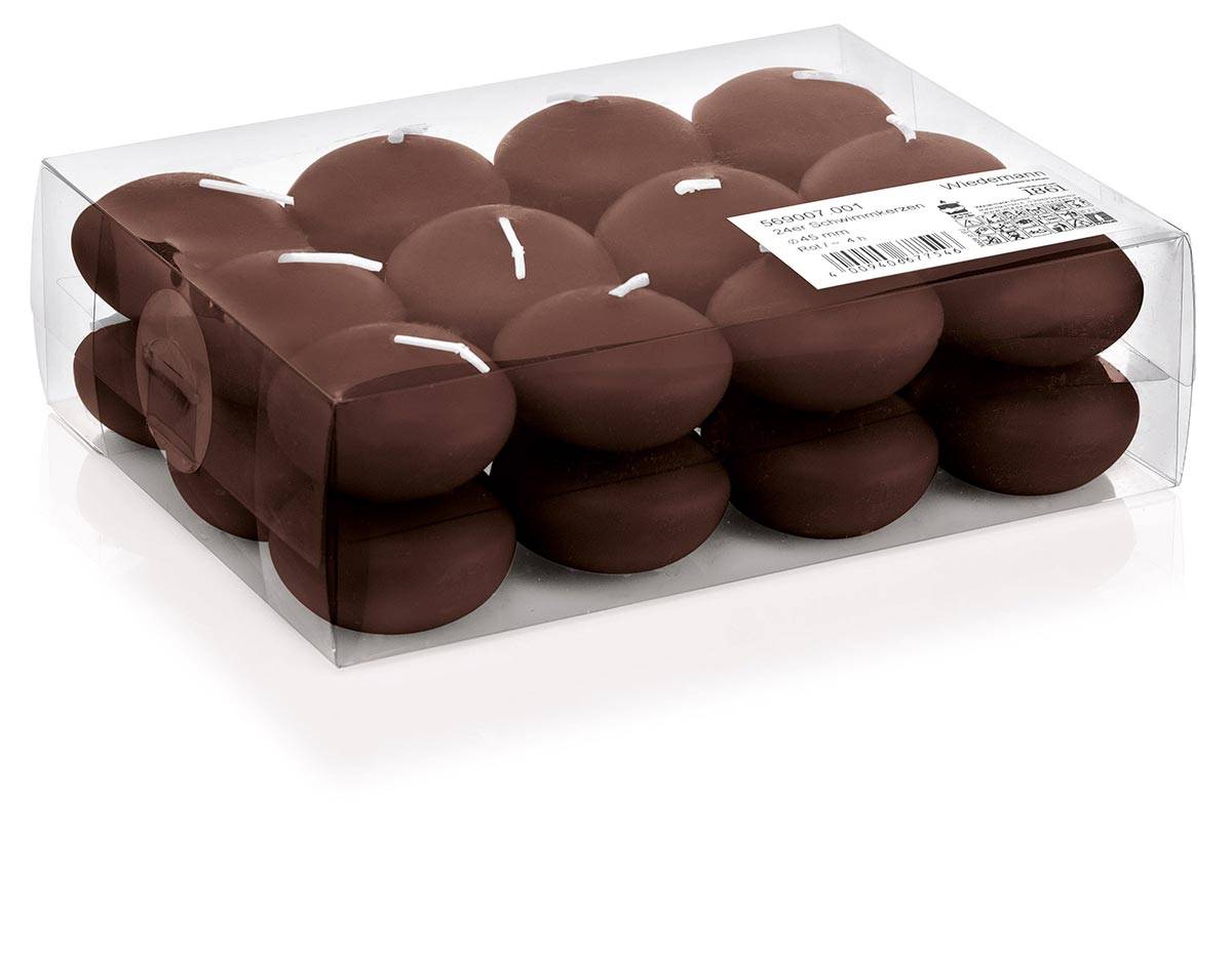 Set di 24 candele galleggianti ORNELLA, marrone cioccolato, Ø4,5cm, 4h
