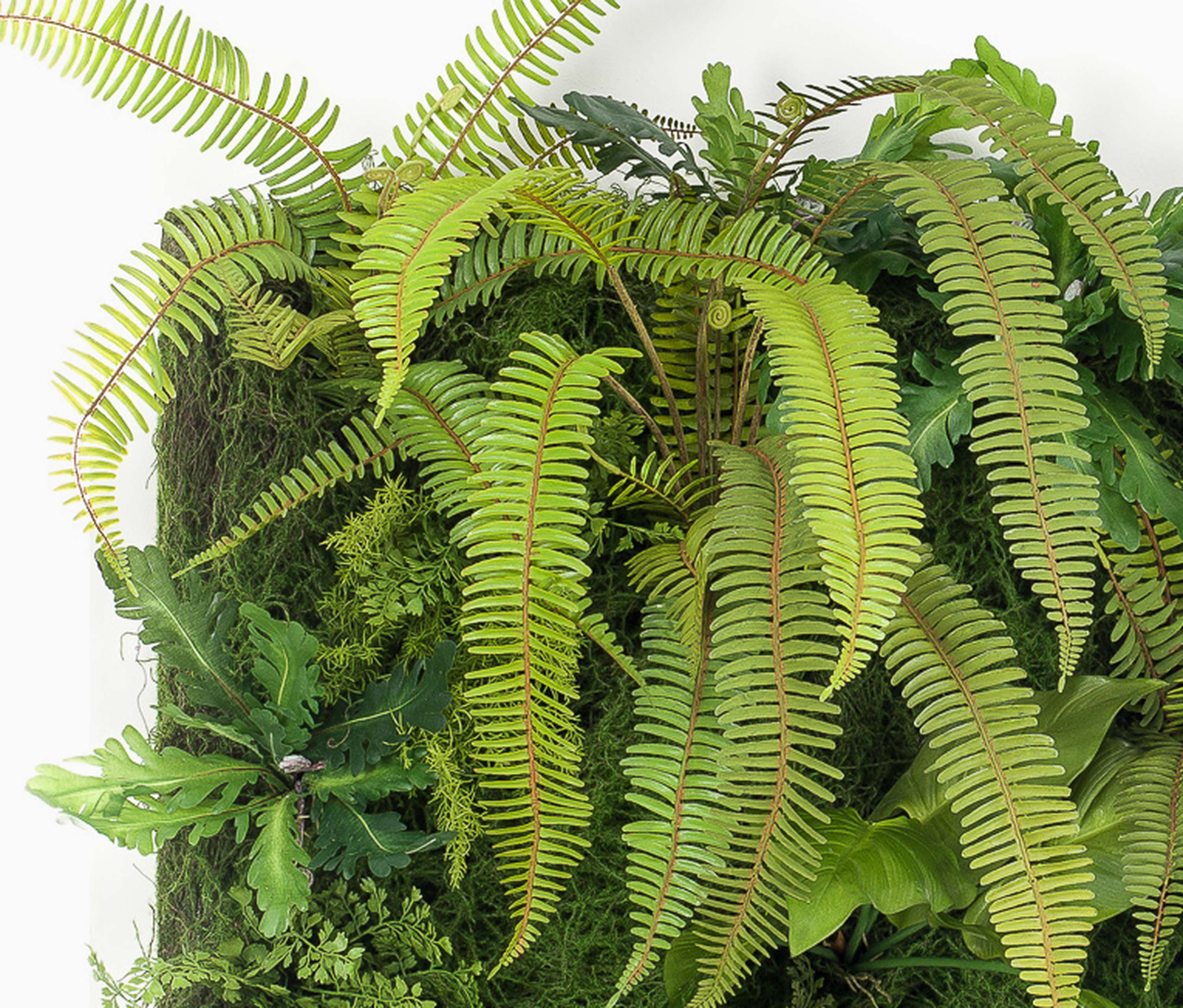 - Varie piante verdi: felce reale, felce nido, asparagus e alocasia