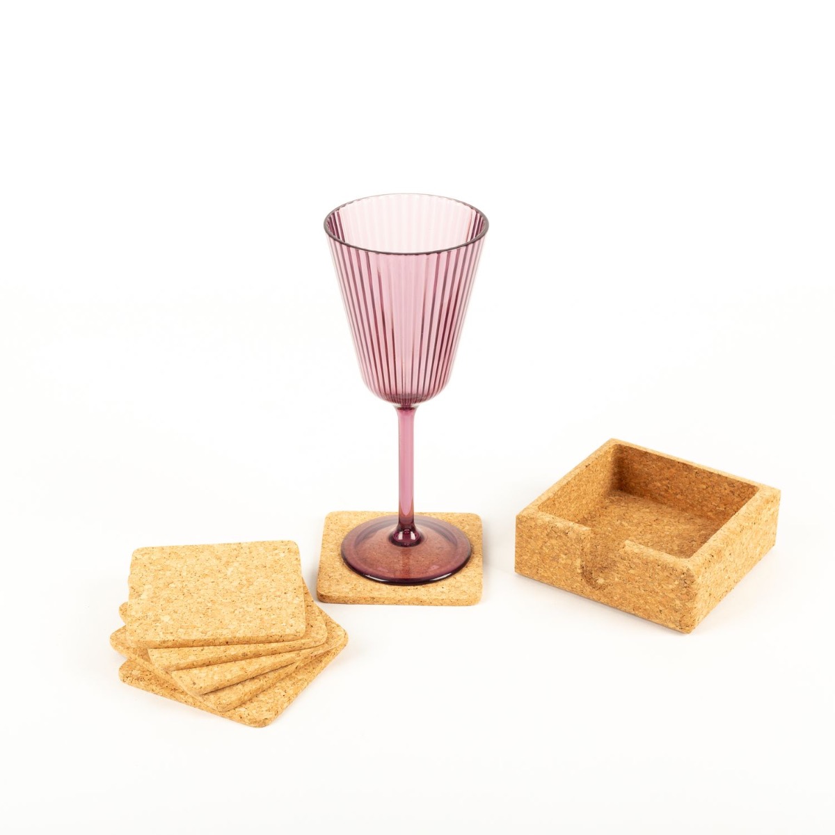 Sottobicchieri in sughero quadrato MINARA con supporto, 6 pezzi, naturale, 9x9cm, spessore 0,5cm