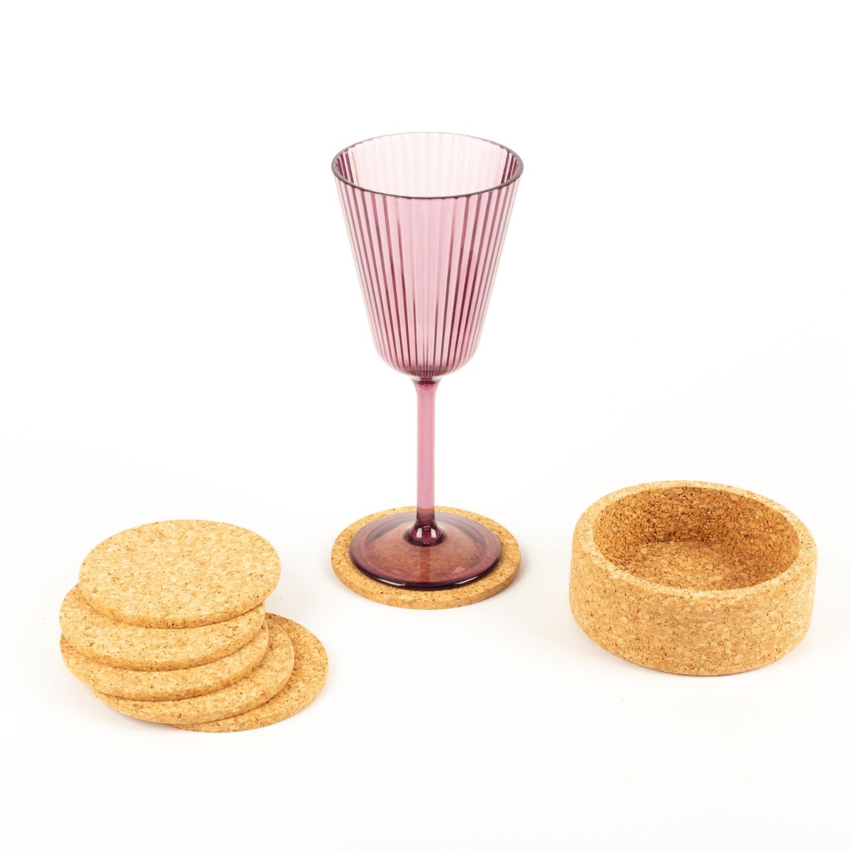 Sottobicchieri in sughero rotondo HALINA con supporto, 6 pezzi, naturale, Ø9cm, spessore 0,5cm