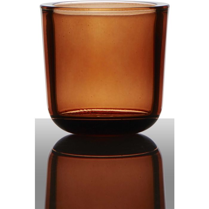 Supporto di vetro per candela da tè NICK, arancione-trasparente, 7,5cm, Ø7,5cm