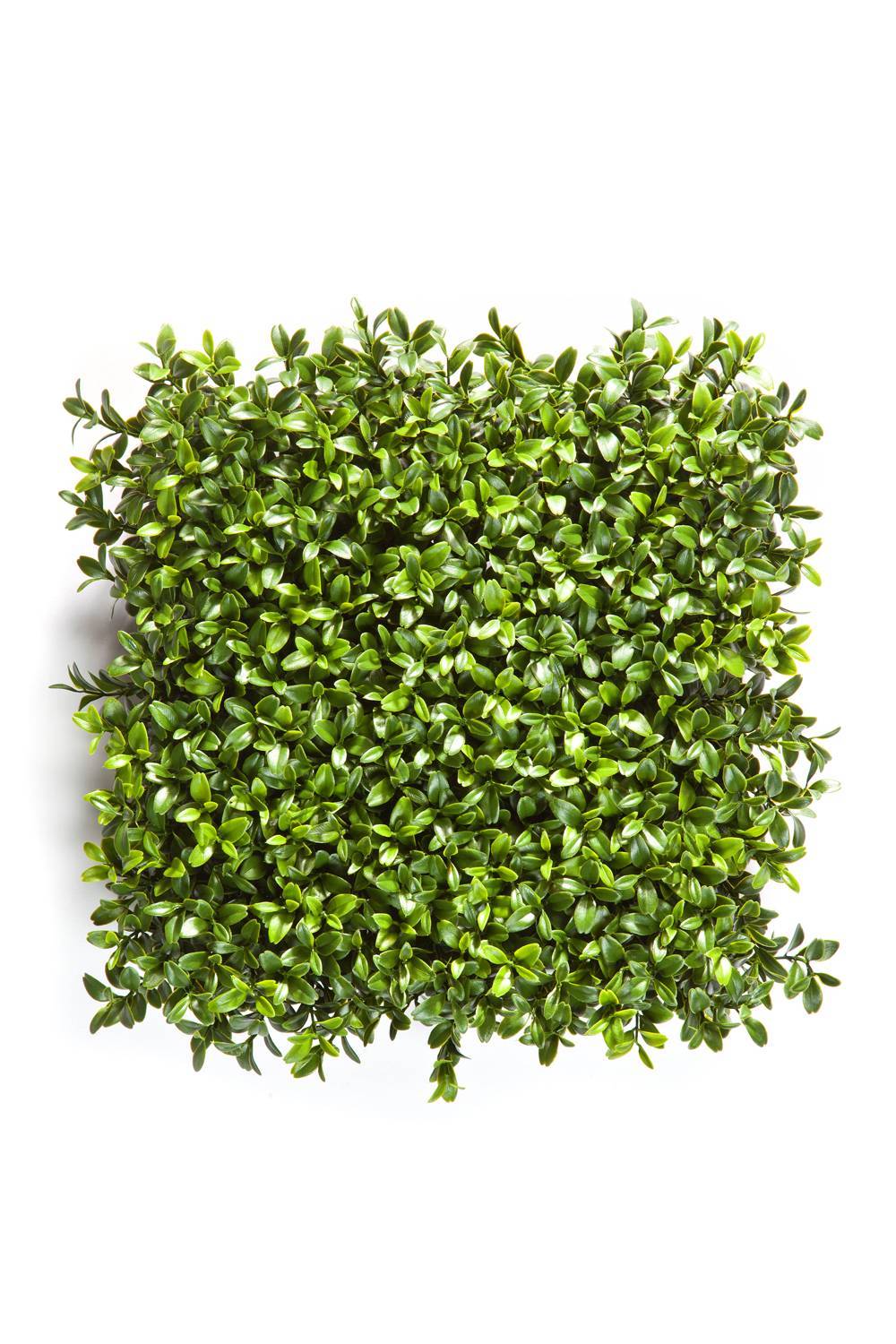 Il tappeto di bosso artiaficiale TOM si compone di un fitto fogliame in sfumature di verde chiaro e scuro ordinato in forma quadrata. Con la sua altezza di ca. 25 cm, si presta bene come decorazione per rivestire una parete.