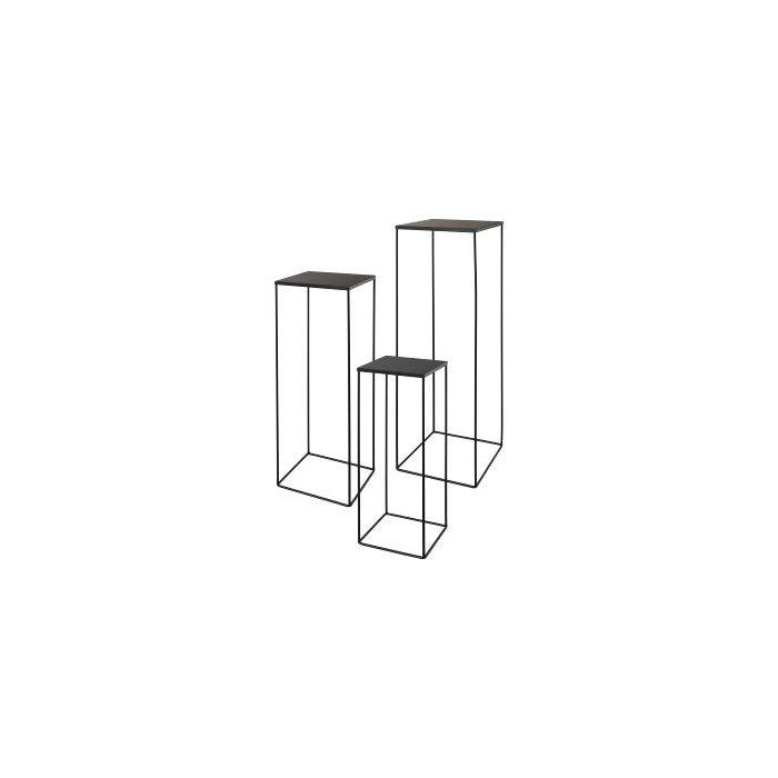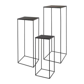 Tavolino portafiori in metallo ULAAKA, 3 pezzi, nero, 19x19x50 cm, 22x22x60 cm, 25x25x70 cm