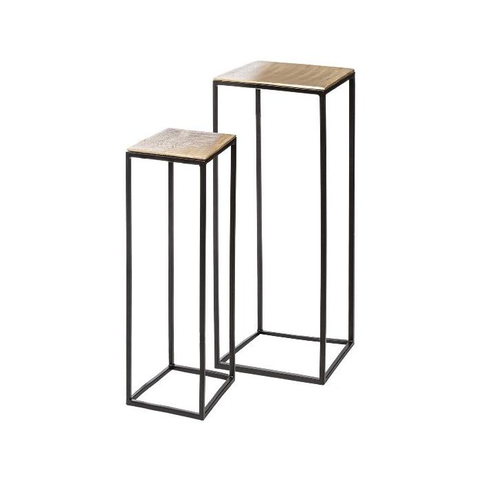 Tavolino portafiori in metallo WAKANDA, 2 pezzi, nero-marrone, 22x22x60 cm, 25x25x80 cm