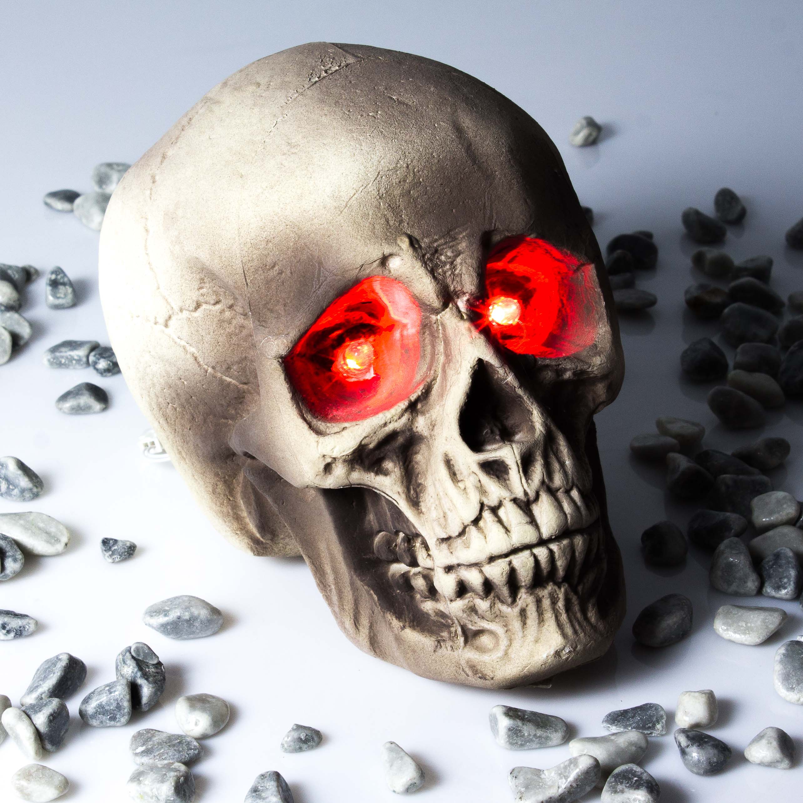Teschio per decorazione di Halloween MATTY, beige-grigio, LED, 21x15x16cm